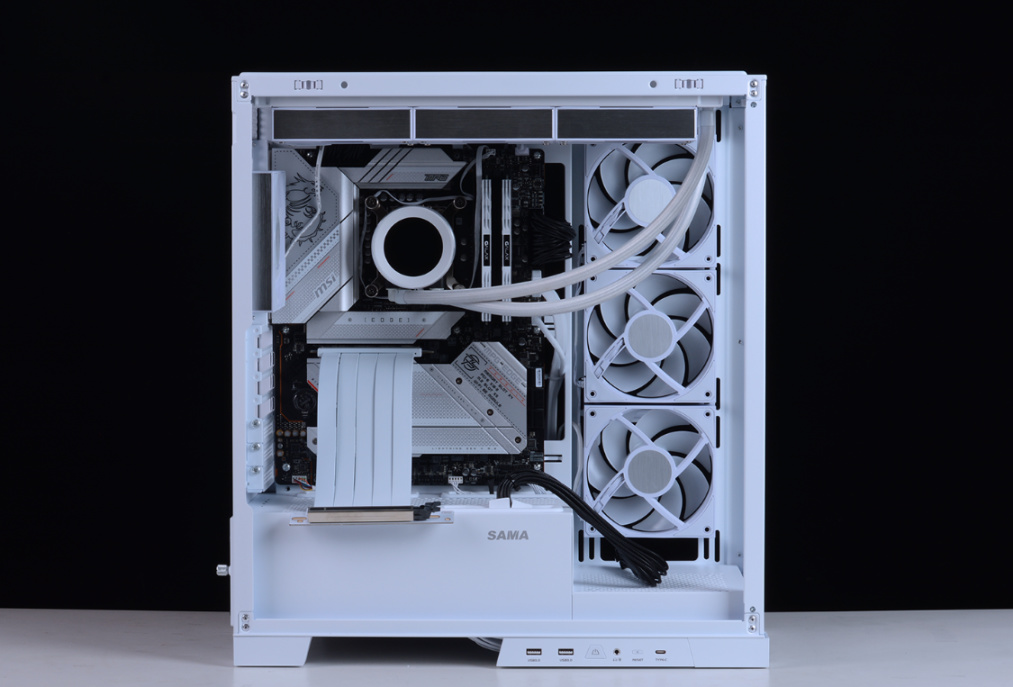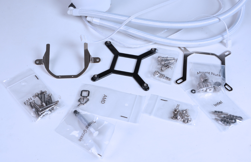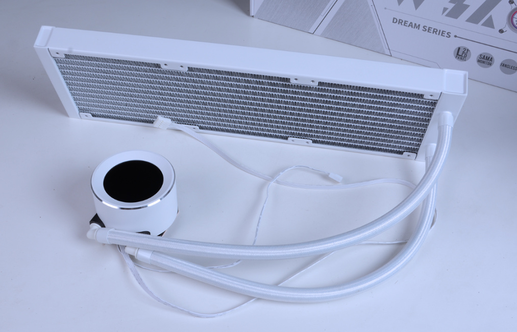 全白化铝制冷排,搭配白色散热风扇和线材,颜值出众。