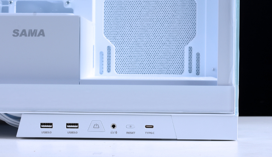 机箱的I/O面板(含:USB 3.0*2+Type-C*1+二合一音频口*1)采用了模块化设计,可以很好地贴合不同玩家不同的使用习惯。除了预装好的位置,也支持移装到正前脸下方,操作也非常简单。