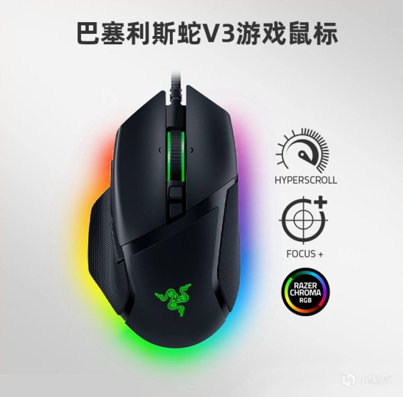 本来是想把罗技G502放在这里的,但是这款鼠标真的太老了,加上罗技这几年有点不思进取,G502虽然一直在推出各种新的联名和无线版本,但是价格和性能都没什么竞争力,所以我把雷蛇巴塞利斯蛇V3放在了这里。巴蛇是一款比较像G502的鼠标,到现在已经升级到了V3版本,PAW3395传感器、光微动、伞绳线,性能全方位不输于G502。