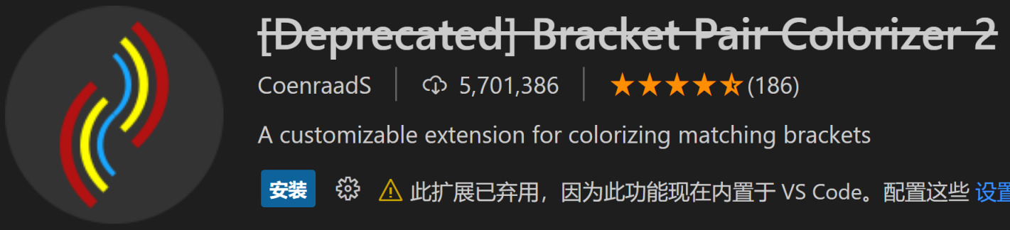 这款插件好像已经被微软官方内置到vscode了。如果代码里有很多嵌套结构,那么可能就会出现“括号地狱”,给阅读代码带来巨大麻烦。有了这款插件,它能将代码里的括号都变成“彩虹”,自动将不同层次的括号设置成不同颜色,防止配对时瞎眼