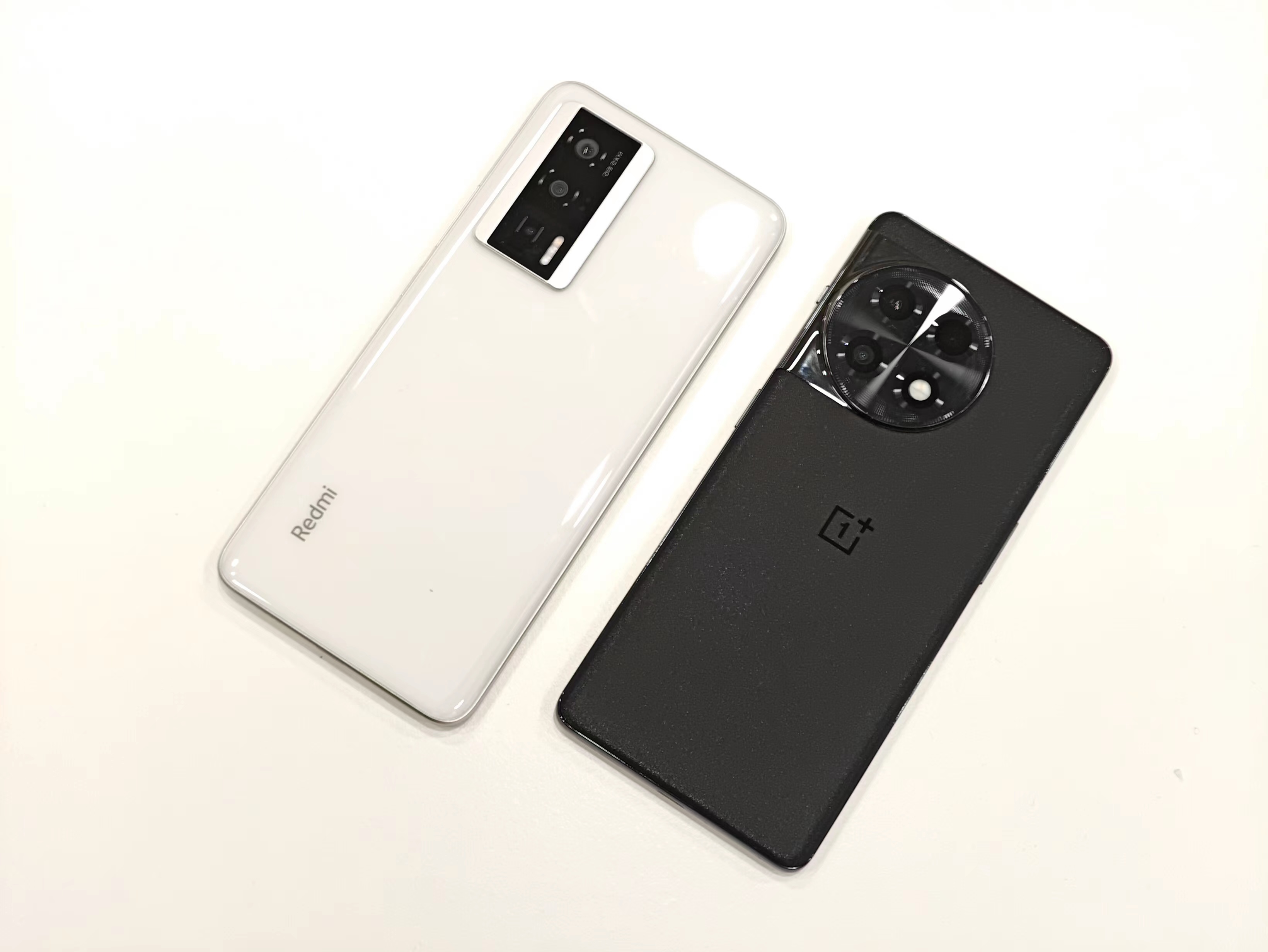 在外观方面,这两款机型的尺寸和重量都非常相似,不得不说一加Ace2的浩瀚黑和红米K60的白色后盖都采用了玻璃材质,并且使用了相同的工艺处理来提高美观度和质感。