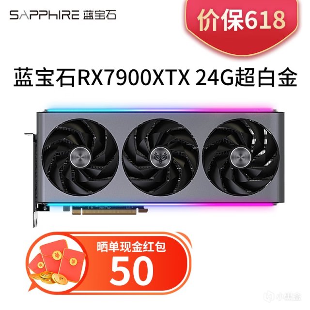 预算充足咬咬牙一步到位蓝宝石RX 7900 XTX超白金OC,属于A卡的顶级设计水平,相比RX 7900 XT超白金L来说,灯效覆盖范围更大,用料更足(真空均热板),售价7199元其实比丐版RTX 4080都要低。