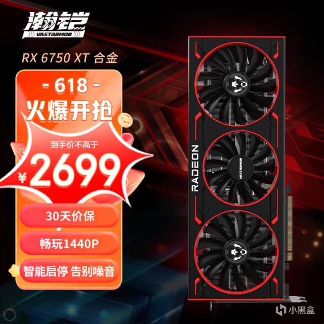 追求均衡一些则可以选择瀚铠RX 6750 XT合金,三风扇设计支持0db技术,温度表现更好,售价2699元性价比也挺高,大部分玩家如果不是对机箱空间有要求的话,硬核首先会推荐这款。