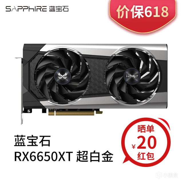 追求整体品质的话,可以选择蓝宝石这款RX 6650 XT超白金OC,四根镀镍热管+双轴流风扇加持,侧面有信仰灯,并且加固支撑、背板设计也少不了,Boost频率也要高点。
