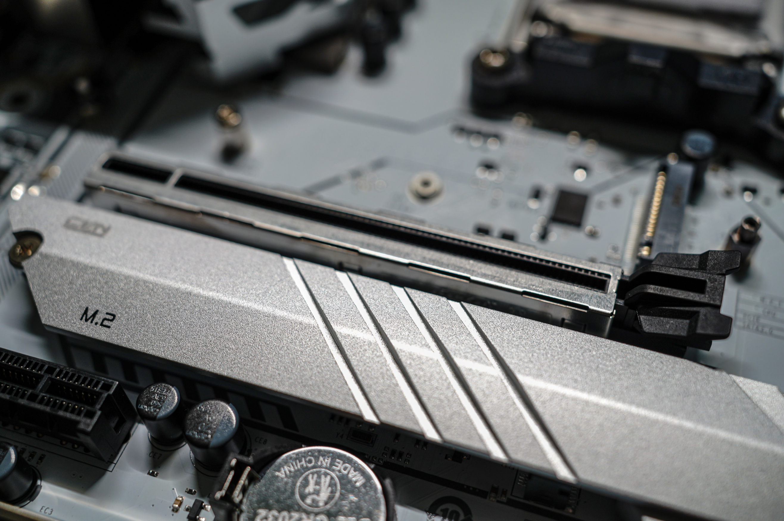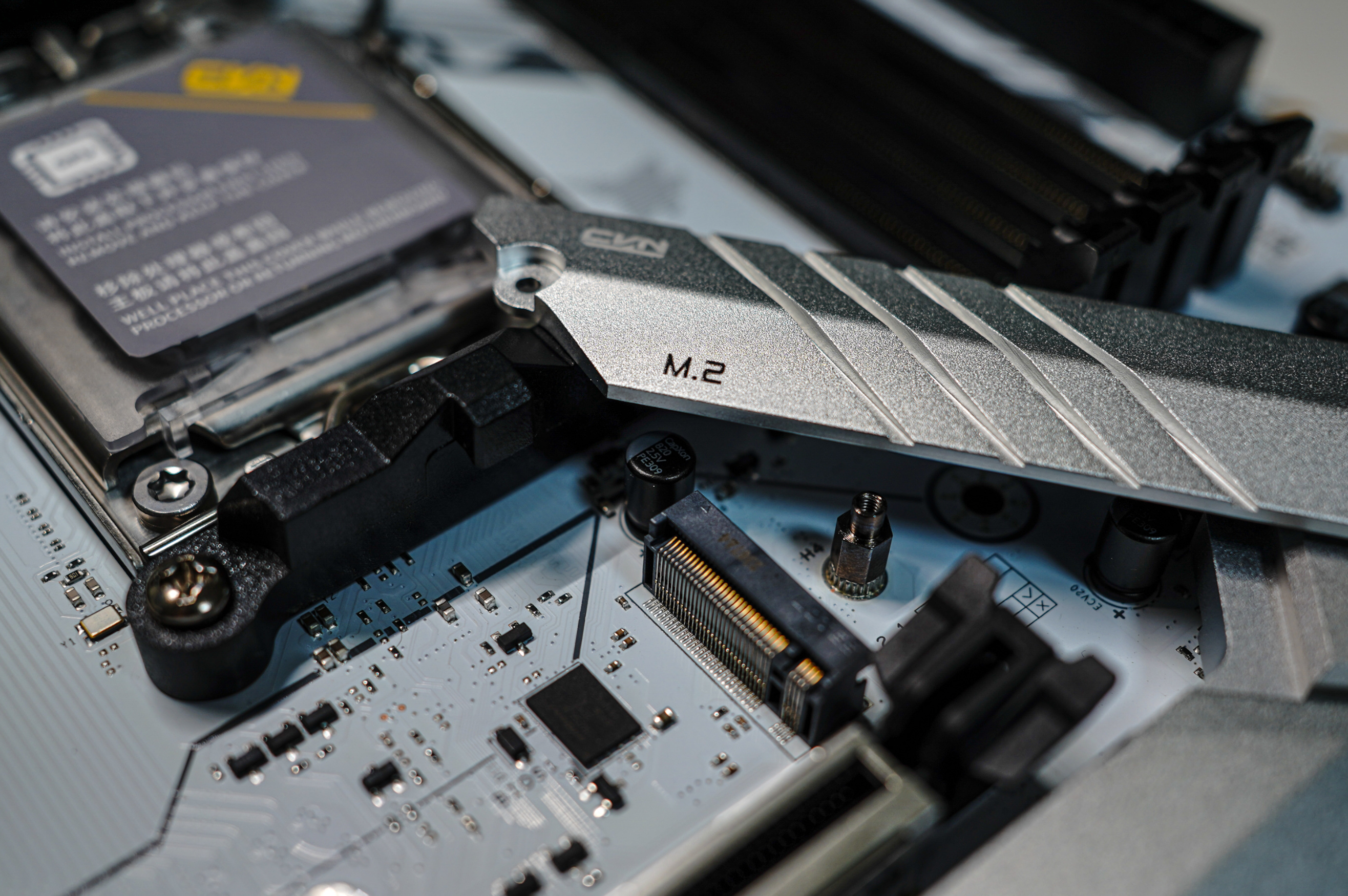 七彩虹B650巡洋艦的M.2擋板內置了輔助散熱的硅脂墊,切記撕掉保護膜之後再安裝回去,不然容易出現熱量囤積導致的降速或者掉盤問題。