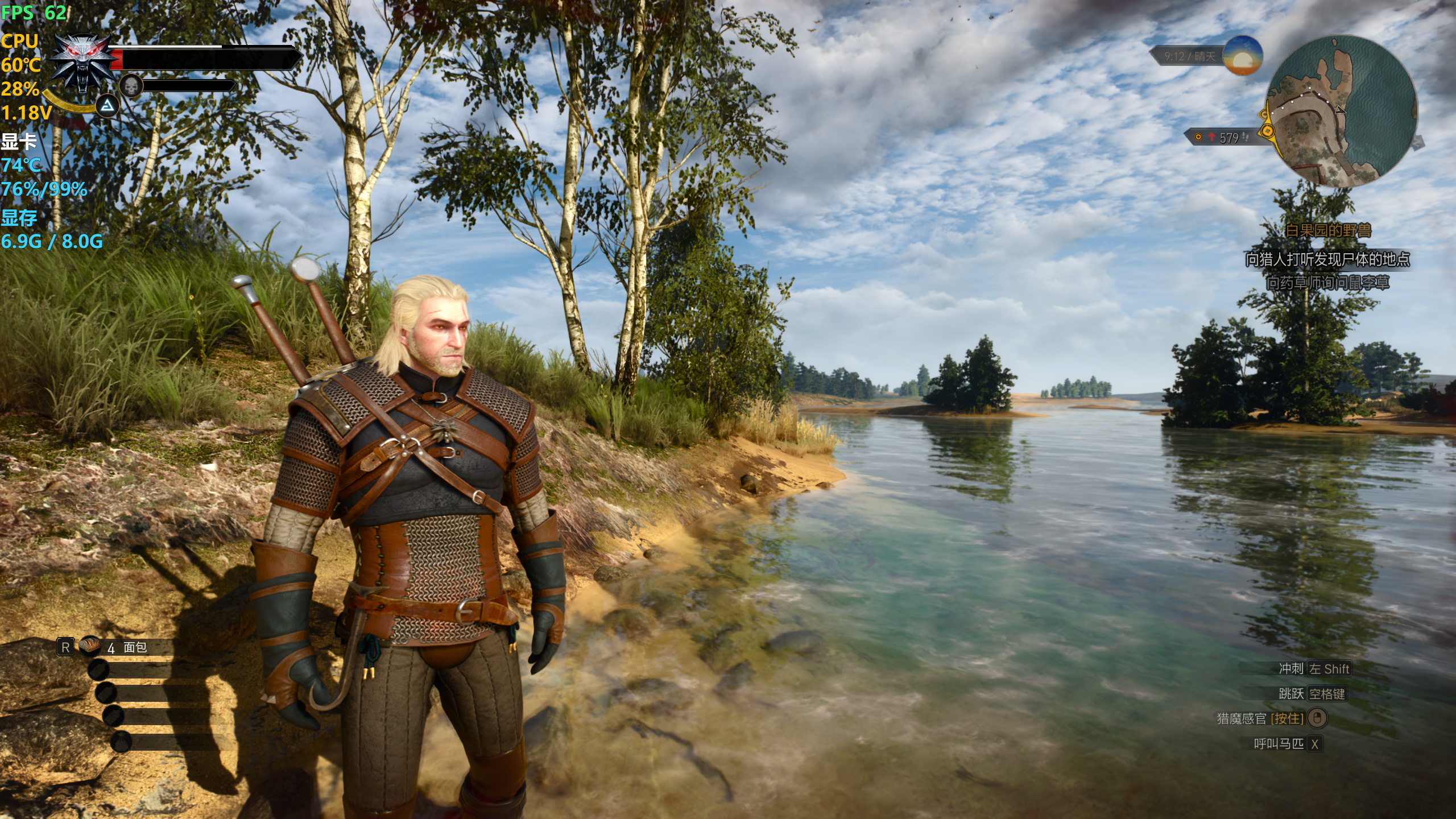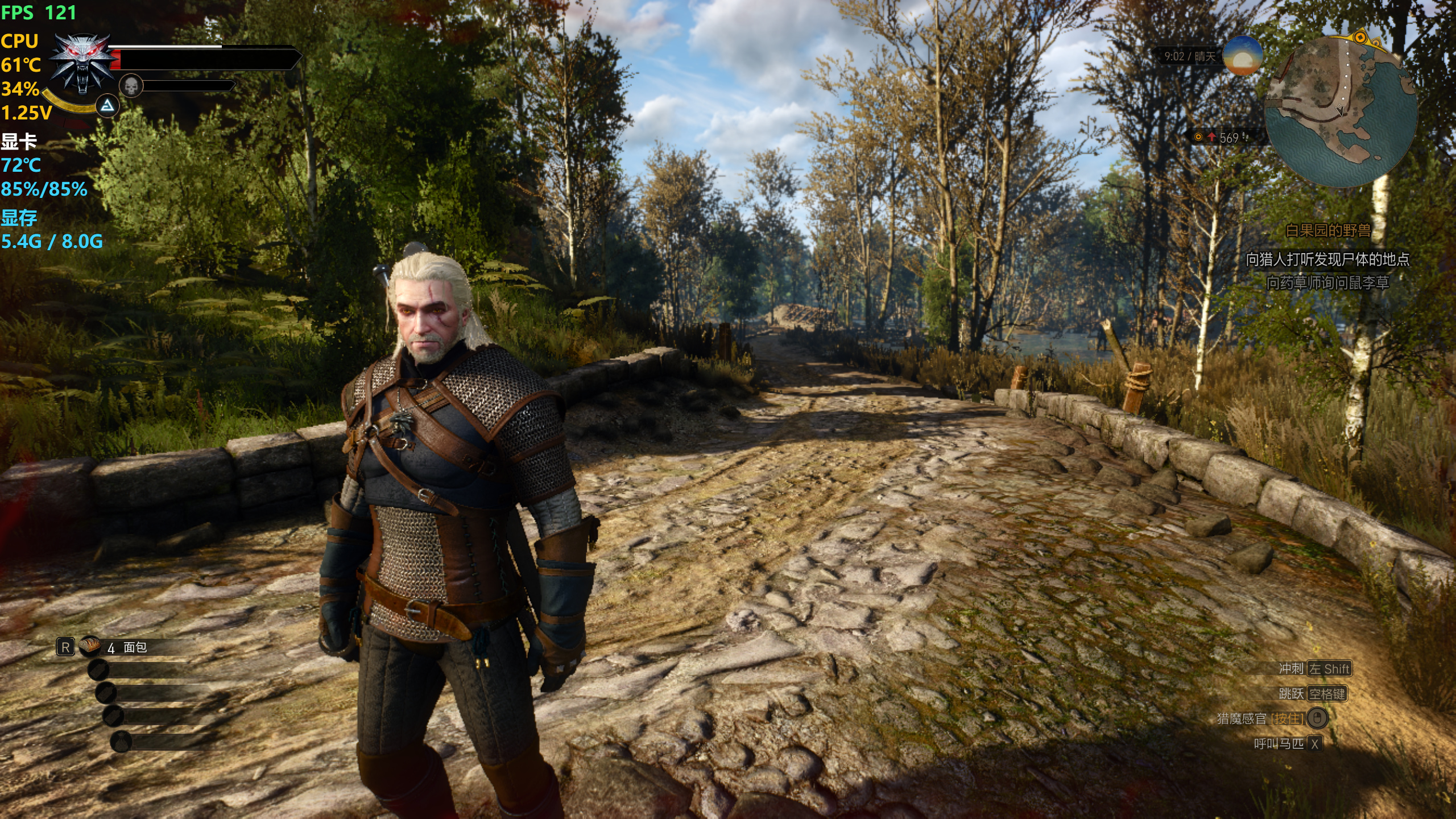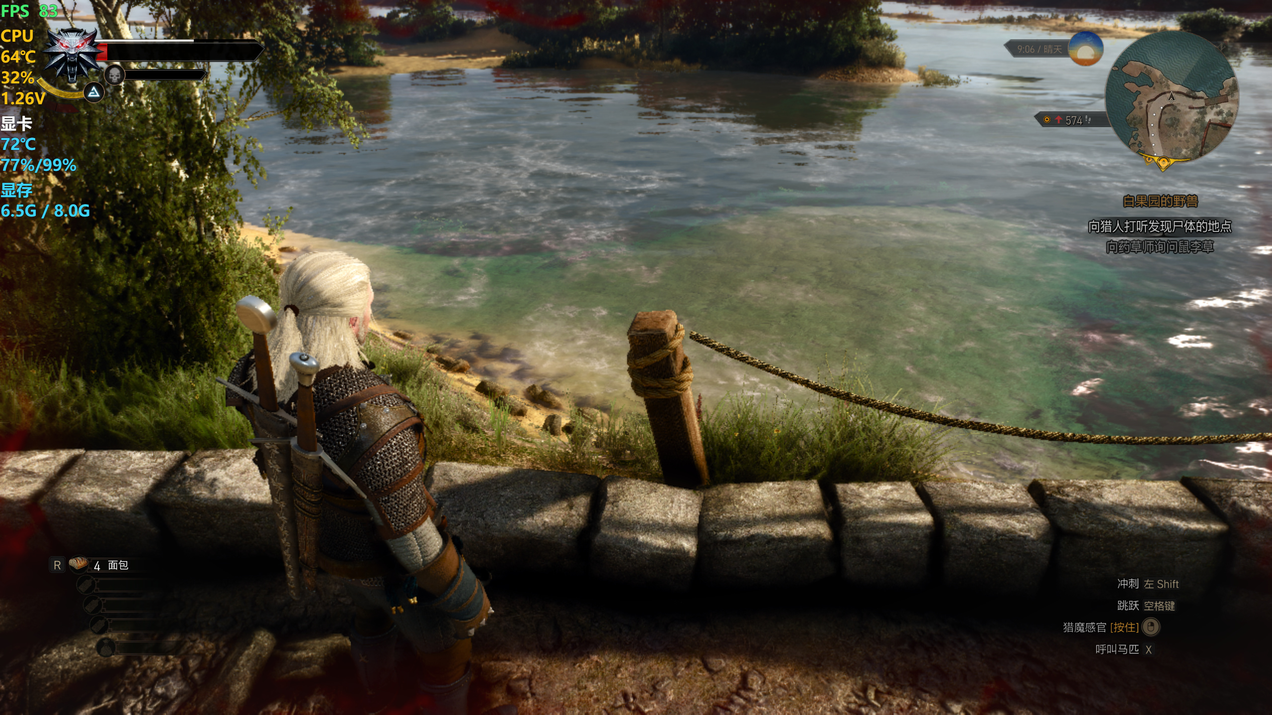 配置遊戲畫質爲2K+默認極高畫質+開啓光追,遊戲數據如下圖所示,戶外FPS在80左右。