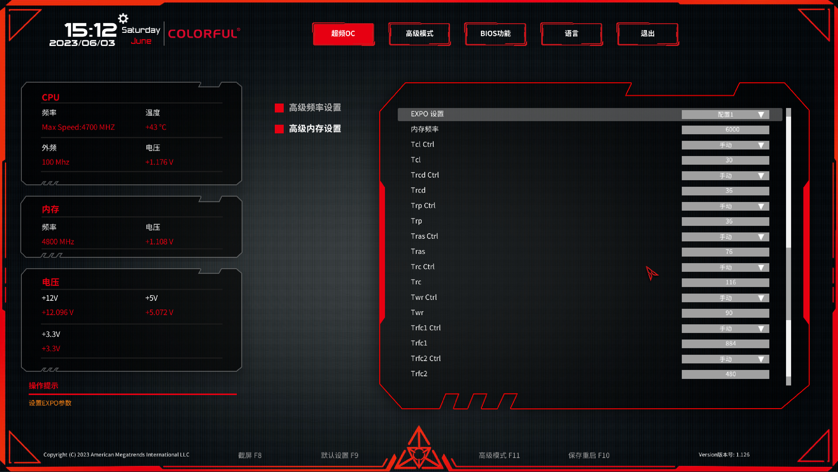 據說七彩虹找了一幫臺灣大手子專門做BIOS,這次開機進去看了下確實有些變化,CPU和內存的可配置項目多了很多,估計Intel用戶會比較爽一些,這裏說一下內存開啓EXPO的方法。