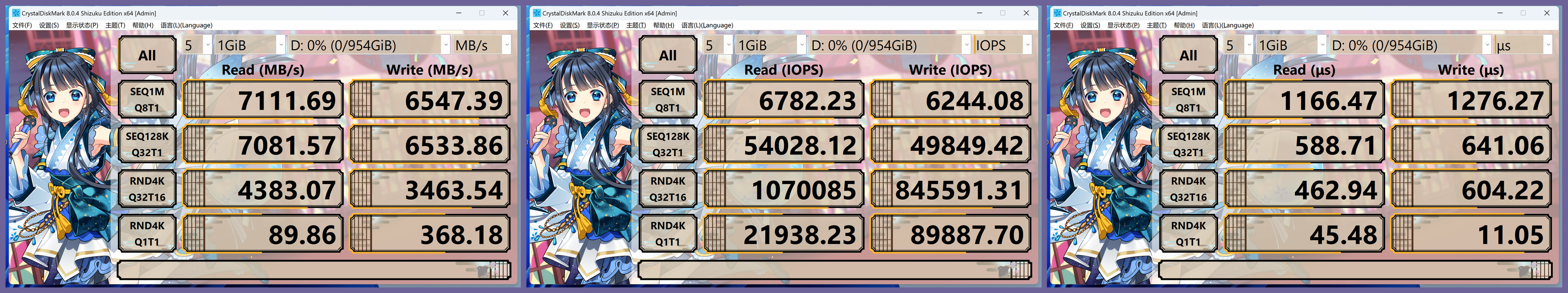 在这个部分,我们将在空盘状态下使用常用的测试软件对金百达KP260 Plus进行读写能性能测试。同时,网传HMB无缓方案的固态硬盘会在占用容量较大时出现性能下降的问题,为了终结这个流言,本次还会使用伪随机数据填充至95%容量后,继续观察性能表现。