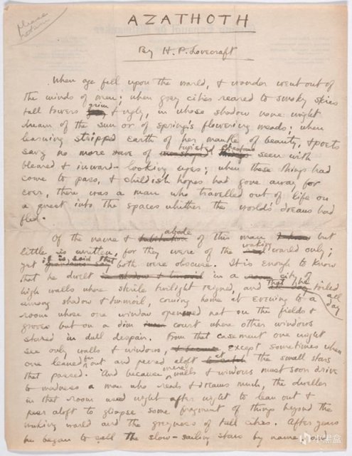 應盒友的要求,今天給大家帶來的是洛夫克拉夫特於1922年6月創作的短篇《阿撒託斯》,是一篇非常短的文章,據說是作爲他計劃寫作的某部小說的片段,不過暫時並無證據證明。