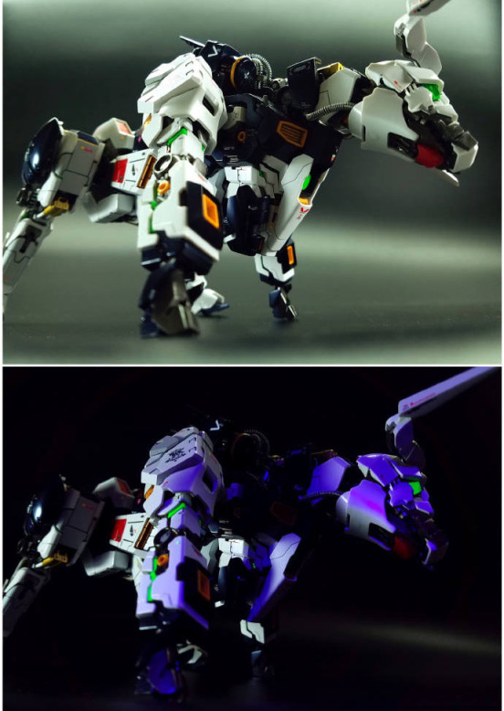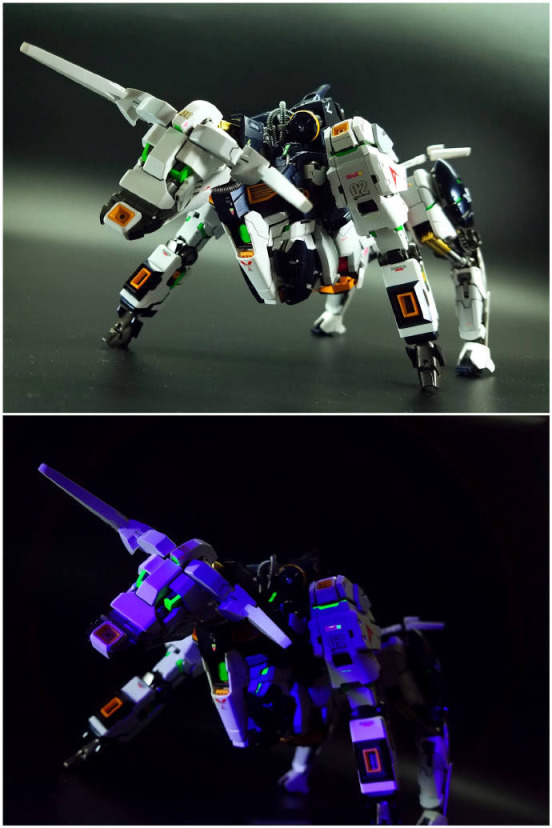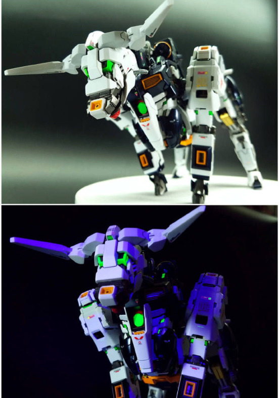 为了丰富这款模型的玩法,模友还为这款模型增加了荧光涂装,在紫光的照射下,看起来还是很漂亮的。