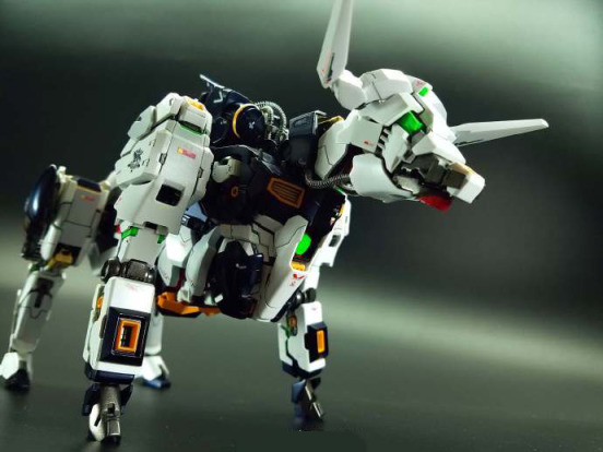 模友将牛高达模型的各个零件进行重新拆分组装,组装成了目前我们看到的牛形模型,大家能看出来每一个结构都使用的是牛高达的哪部分零件吗?比较容易看出的是手臂和脚部的结构。模友还还原除了爆甲的结构,我们还能看到一些绿色的精神力骨架。