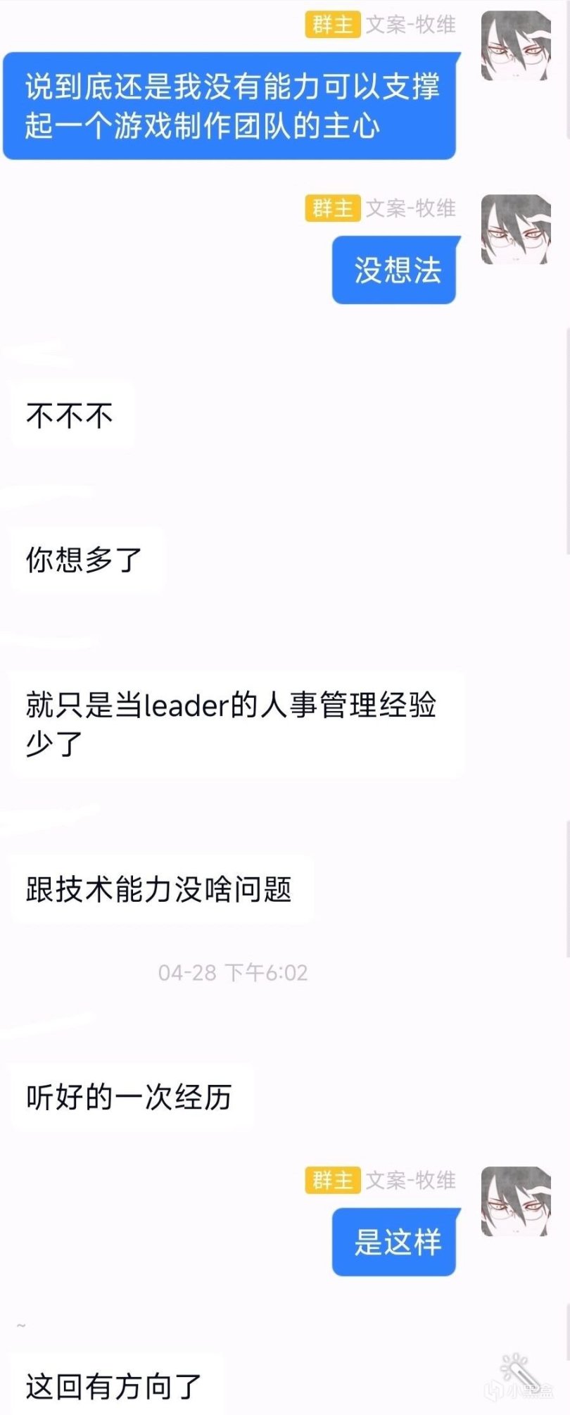 最终,我开启了群禁言,不合适便散,还能处就继续,不浪费彼此时间了。结果如下,策划退出群聊,三位美术退出群里,随后音乐老哥被我劝退,不耽误人家组队时间。留下来的只有我和程序老哥。