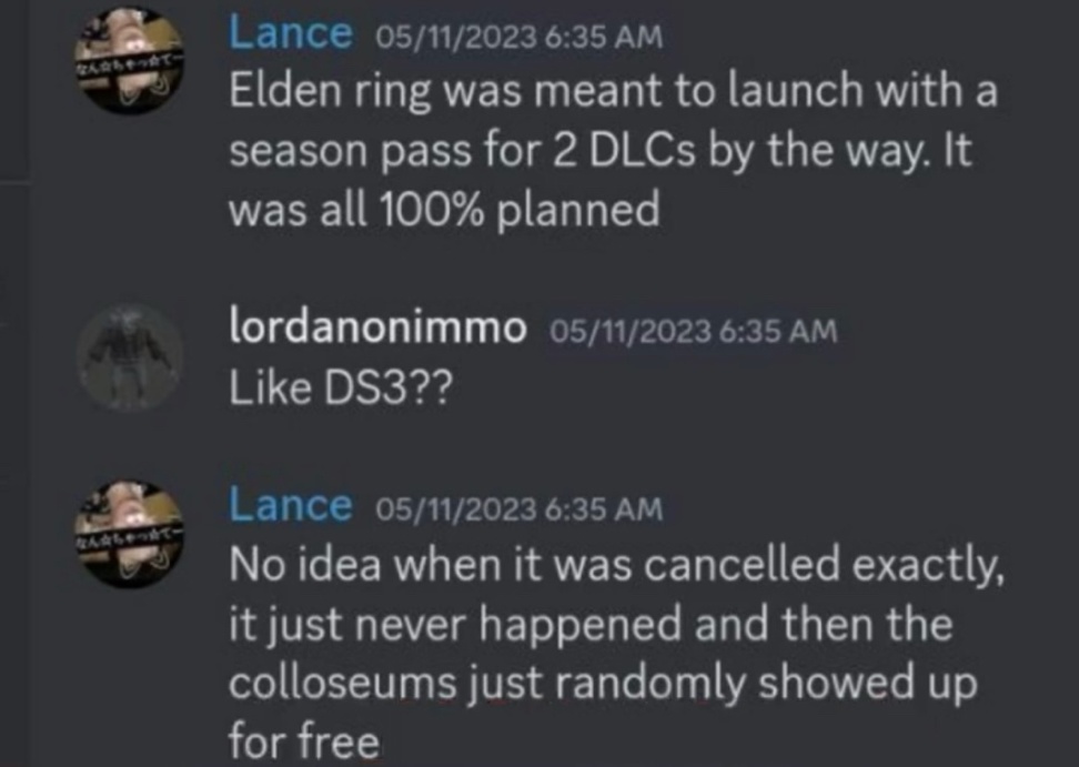 这位爆料者之前也曾经挖出过竞技场在代码里的编号是DLC01,而从最后竞技场玩法确实出现在游戏里来看这次的暴料可信度还是比较高的,不过老头环虽斩获多个奖项,游戏质量也毋庸置疑,但游戏后期的学员地图较为空旷,有不少剧情被砍的毛病,还是有不少人吐槽的,如果老贼真的打算出一部DLC的话,还是希望体量稍微打一些比较好。