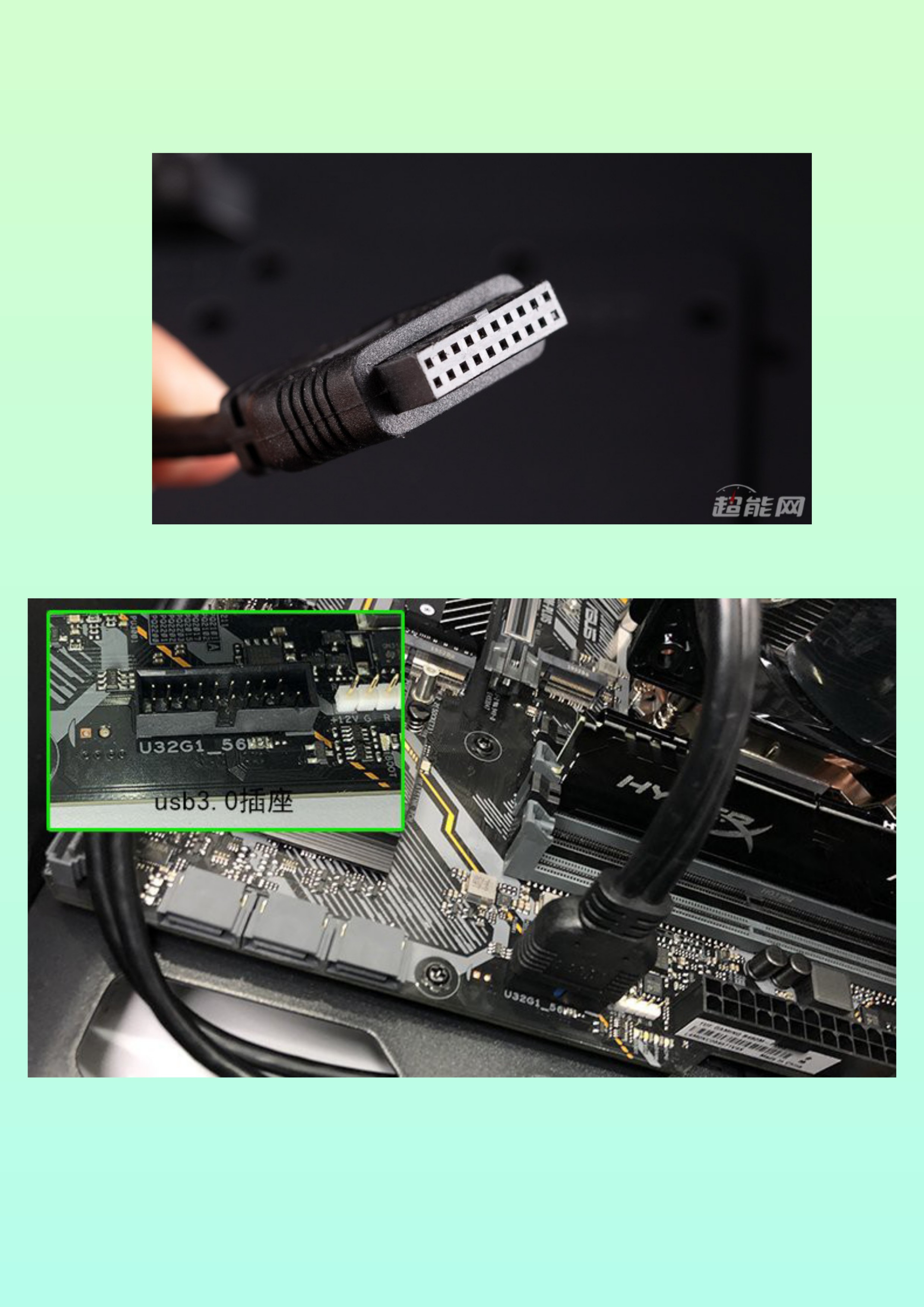 这是USB3.0,只要这个形状的就USB3.0接口了,拿岀机箱上这条线安上就可了