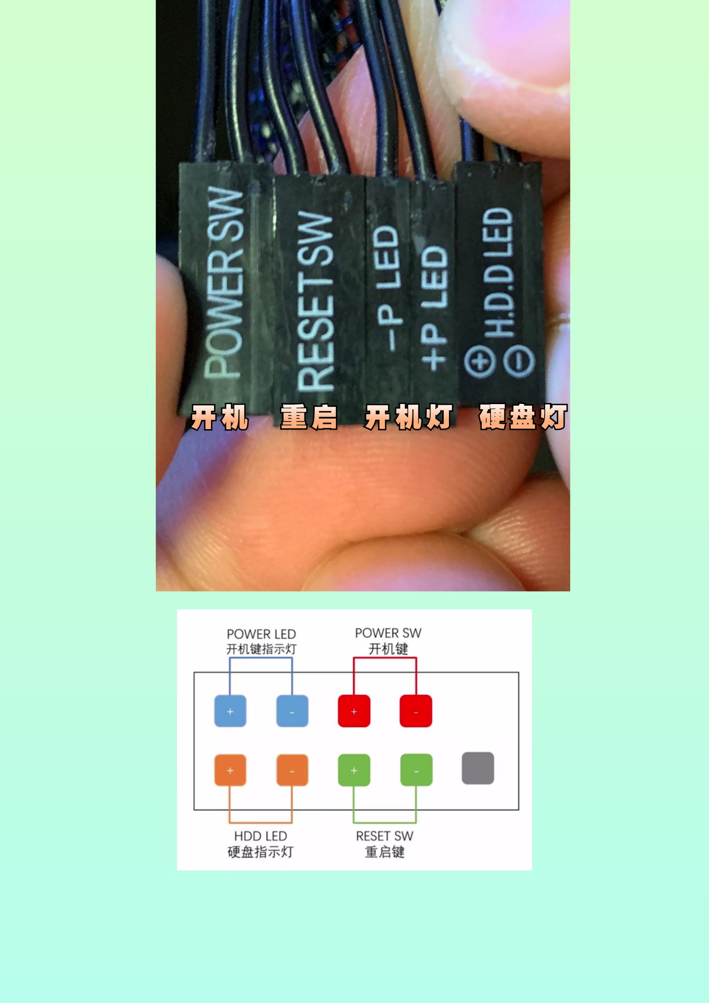几个是跳线,装机小白常通很难分辨,以下的图就是他们的注释,以他们的连接方法,现在的安装方法其实都一样的