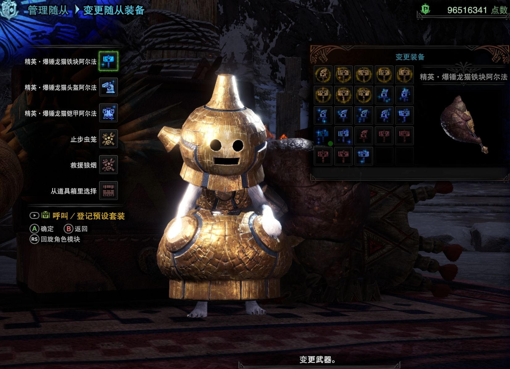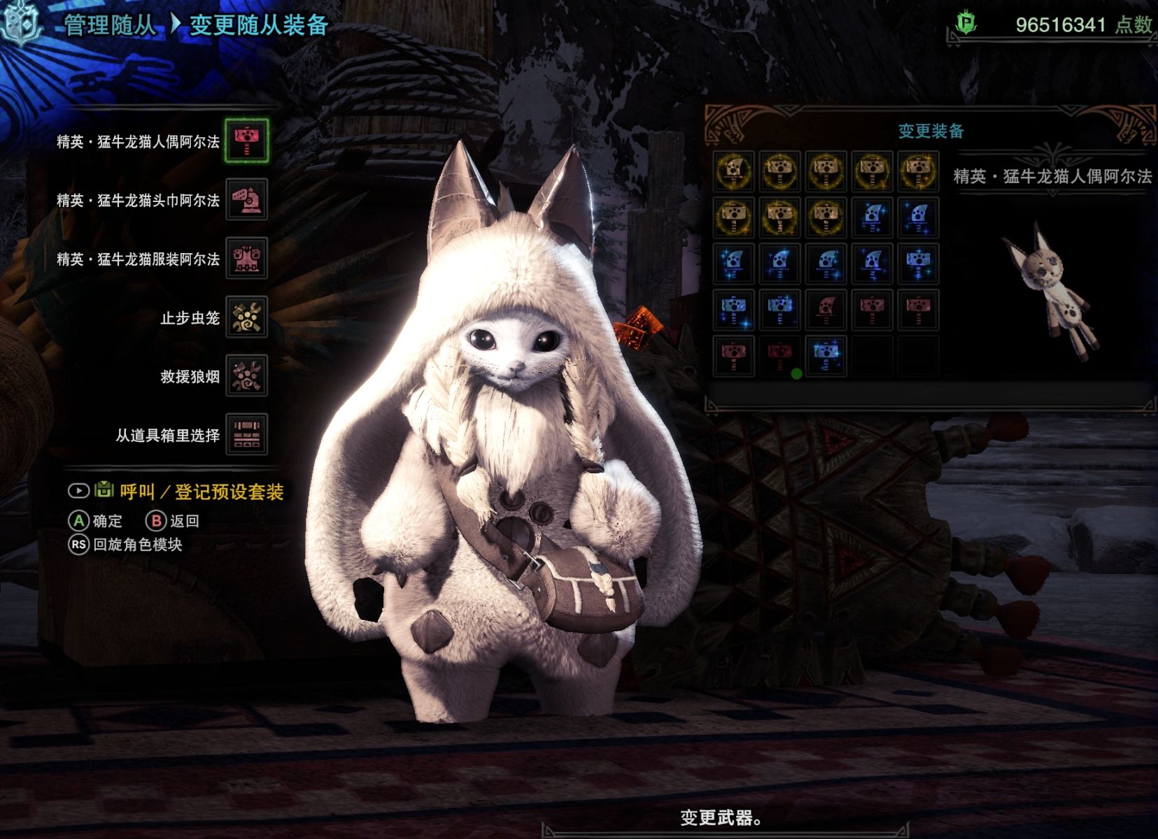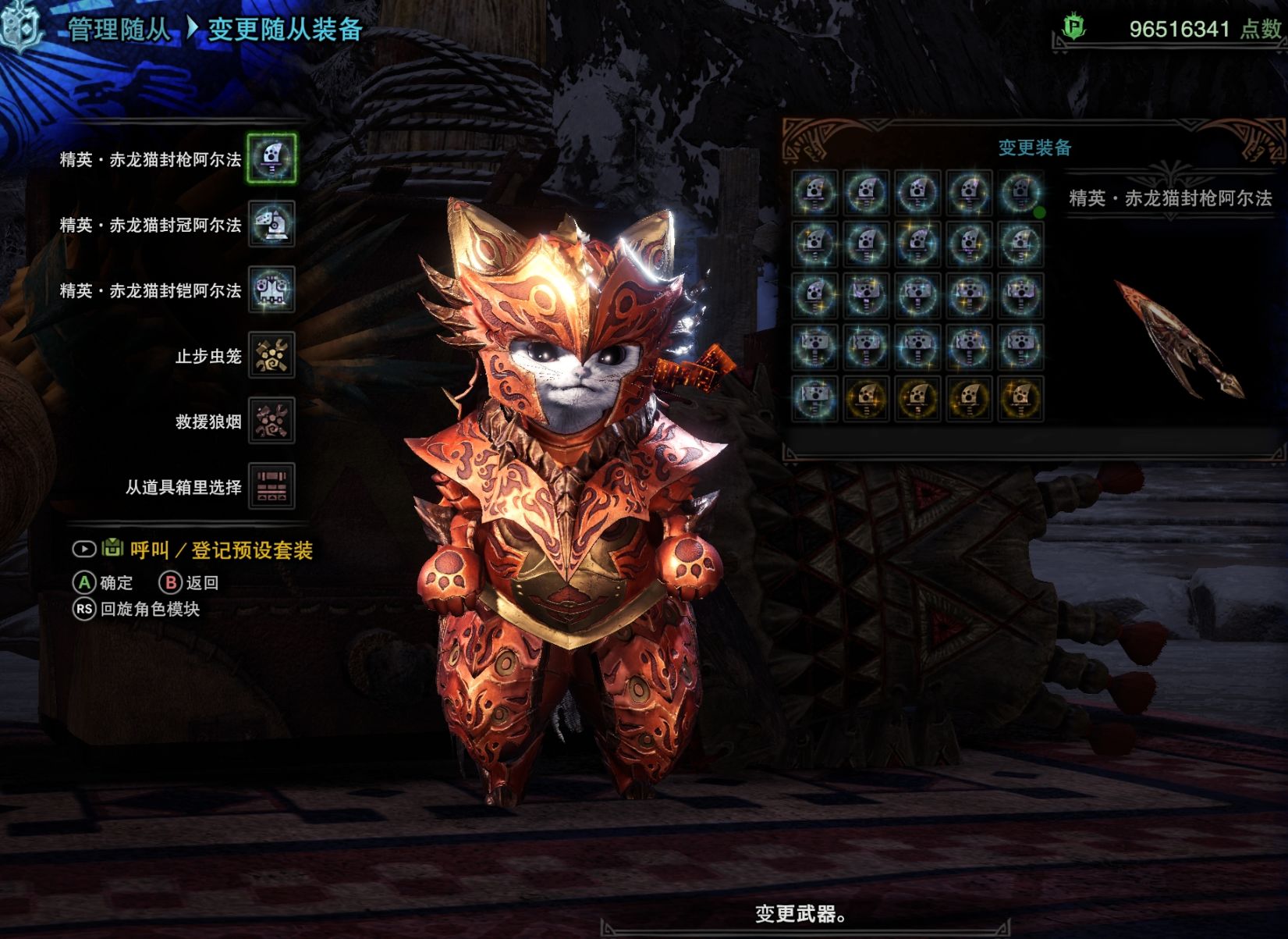 前言∶很遗憾!因为本作世界.冰原卡普空偷懒的缘故,所以艾露猫的外观并不能像猎人那样进行外观幻化。(崛起.曙光可以幻化,可能卡婊良心发现。)并且所有的下位、上位和大师位的艾露猫防具外形没有任何区别。