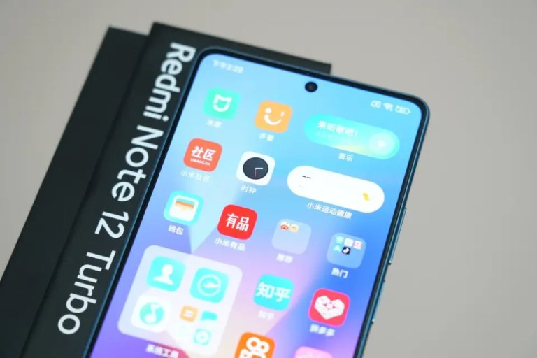 Redmi Note 12 Turbo 采用超细四窄边设计,无屏幕支架设计,上边框为 1.95mm,侧边框为 1.42mm,下巴为 2.22mm,屏占比高达 93.4%;