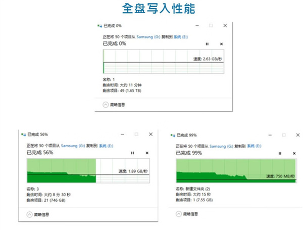 達墨也是比較實在的,相比其他廠商只給出理論性能,達墨還公佈了硬盤實測,以2TB爲例,CDM讀取可達7.1GB/s,寫入6.6GB/s以上,全盤拷貝速度在後面依然能達到750MB/s的速度,性能還是能保證的。