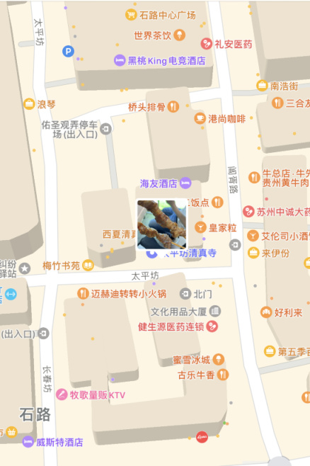 ps:我们中午吃完饭打车的时候遇到了一件趣事,高德地图定位上车点时没有定位到饭店,而是定位到“未知酒店”了。我一开始还以为是软件出了问题,直到我一扭头,发现对面的酒店真的就叫“未知酒店”。