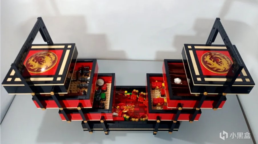 这个盒子有4层7个平台,全部由积木构成,可以选择存放物品或者是设计几个小故事场景来展示,就像设计师这样。