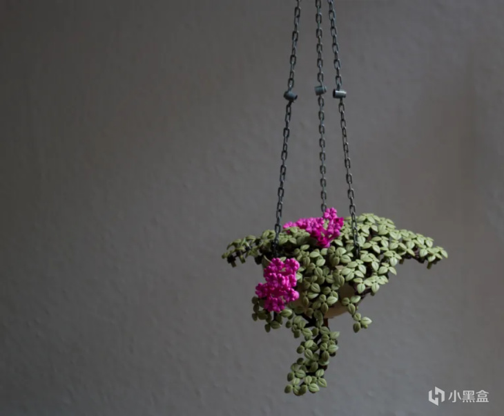 很遗憾作者并没有展示花盆和内部的构造,整套设计出彩在吊兰这一悬空的特性以及吊兰叶片的表现。