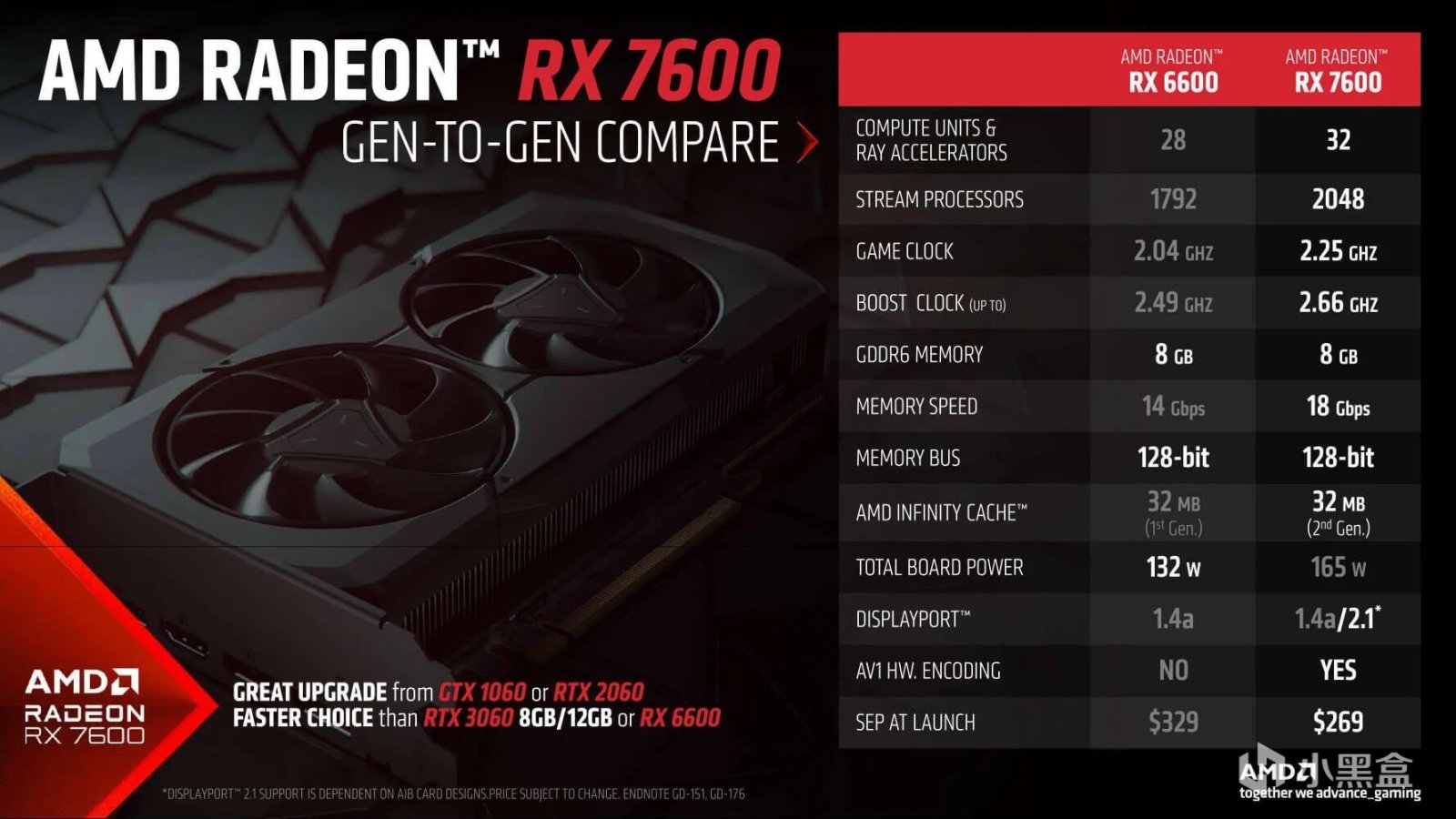 英伟达的RTX 4060 Ti大败,售价太高性能又不高,提升太小,而RX 7600的售价比RTX 4060 Ti低,在一定程度上有性价比,但这两款显卡都只有8GB显存,而且RX 7600售价1899元,RTX 4060 Ti 8GB售价3499元,这样来看性价比就很低了