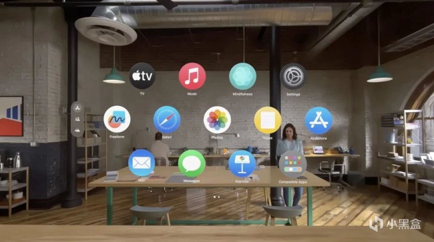 Vision Pro 可以和其他蘋果設備聯動,甚至能兼容 iOS/iPadOS 應用,同時還擁有專屬的 App Store,開發者可以爲其搭載的 visionOS 設計應用。