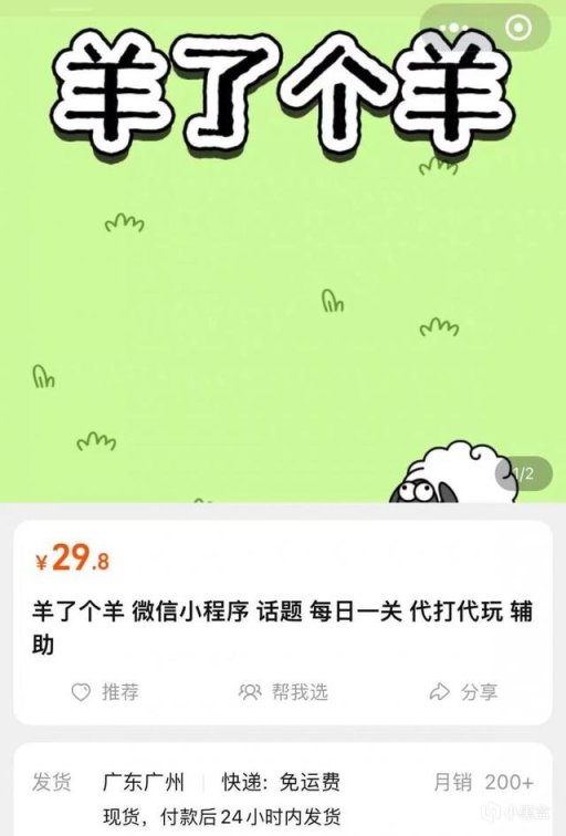 在某电商平台上,已经上架了一整套《羊了个羊》的“服务”,就像当年的游戏代肝工作室提供各种服务,比如提供辅助代肝攻略,或者直接代打代玩通关,要价还不低。