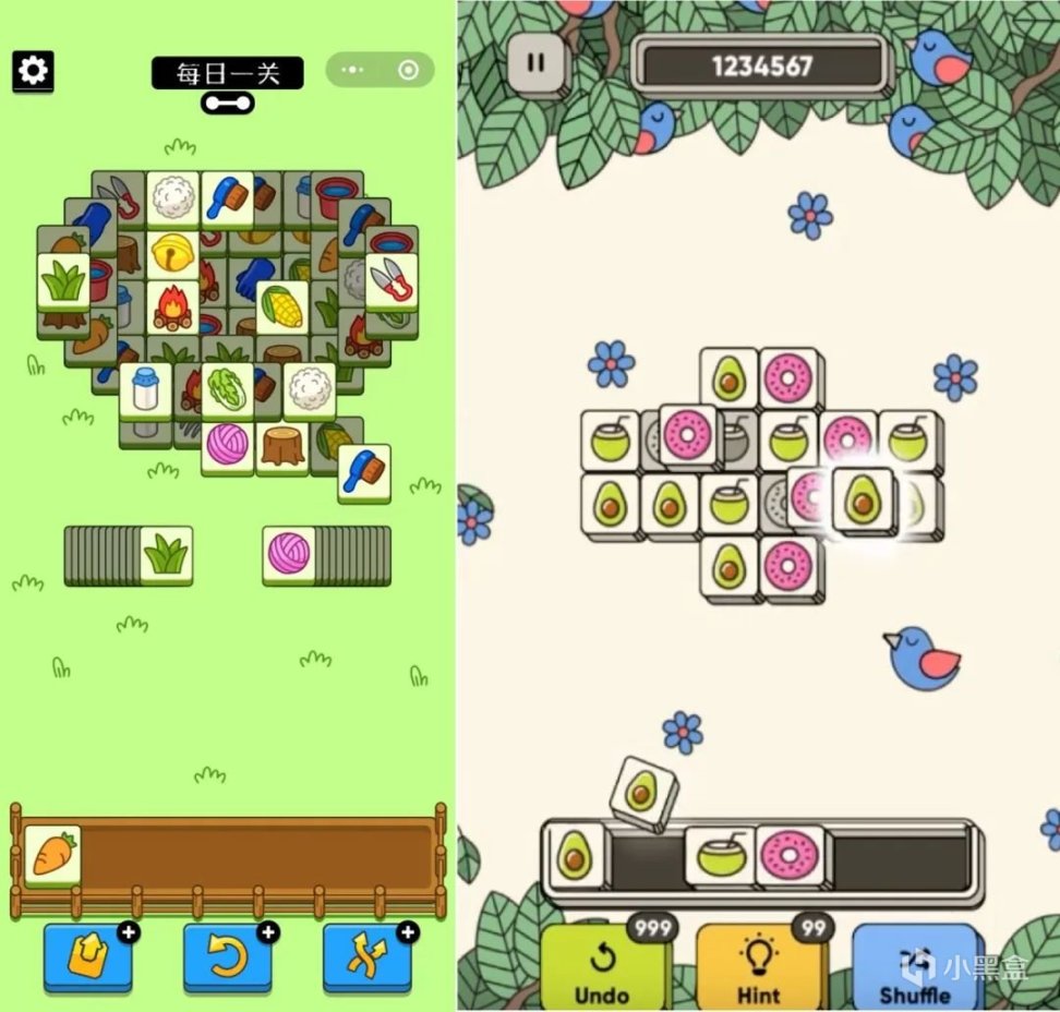 《羊了个羊》在微信小游戏上已经拥有超过100万个玩家,游戏的玩法为经典的三消游戏,就像Candy Crash或Mirror这种类型。把三个相同的图案,放进下面的槽中即可消除,而且还是个无序列表,存进去的图案只要有三个即可消除,槽位满了但物品仍未清理完则通关失败。