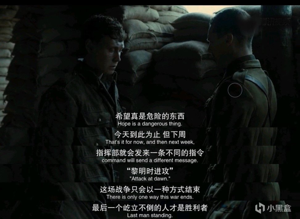 Schofield经历了许多,他失去了Blake,自己也无数次差点儿丧命,终于传达了上级的命令,停止了进攻,但是就在他松一口气的时候,上校却冷静地对他说: