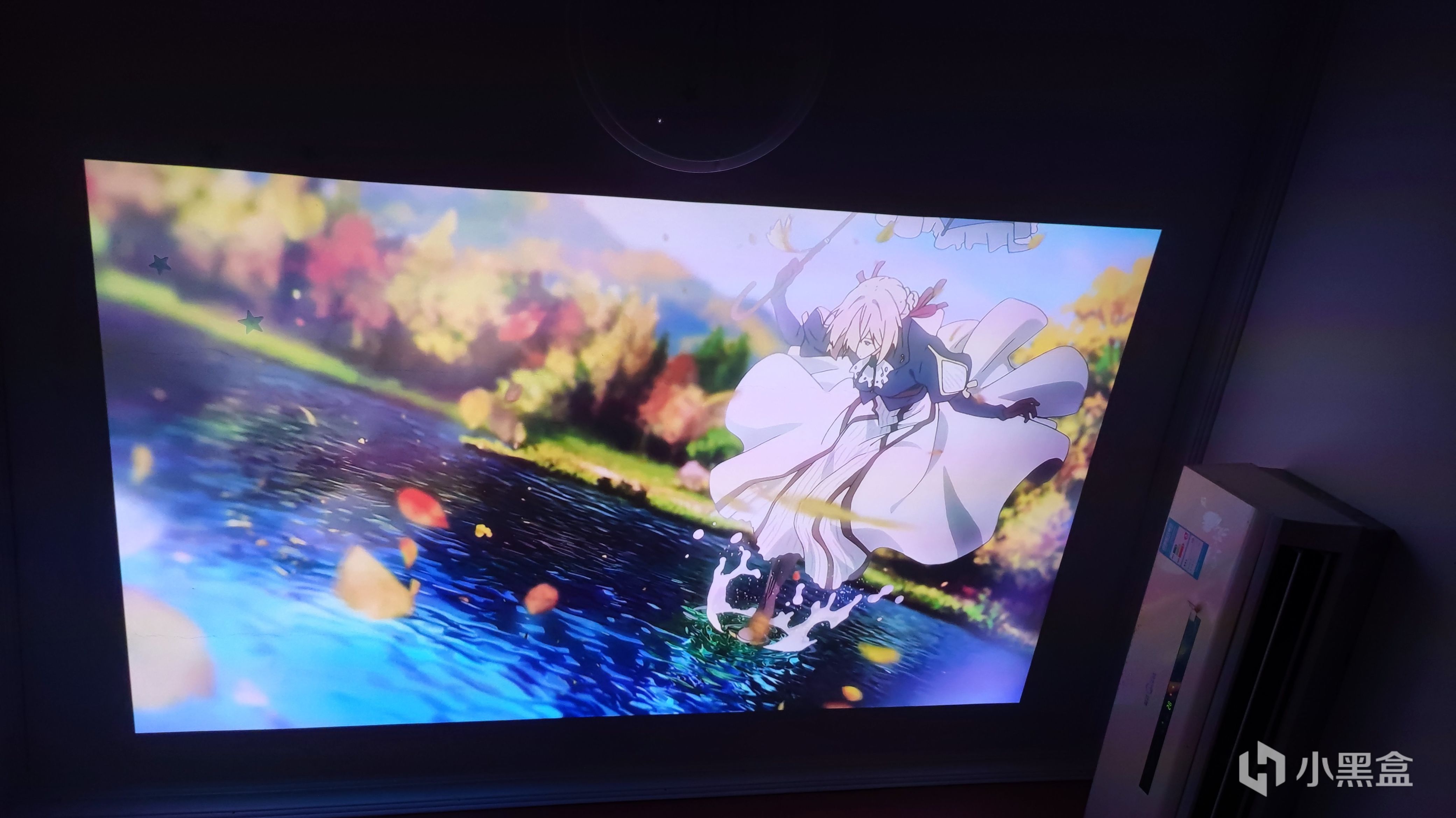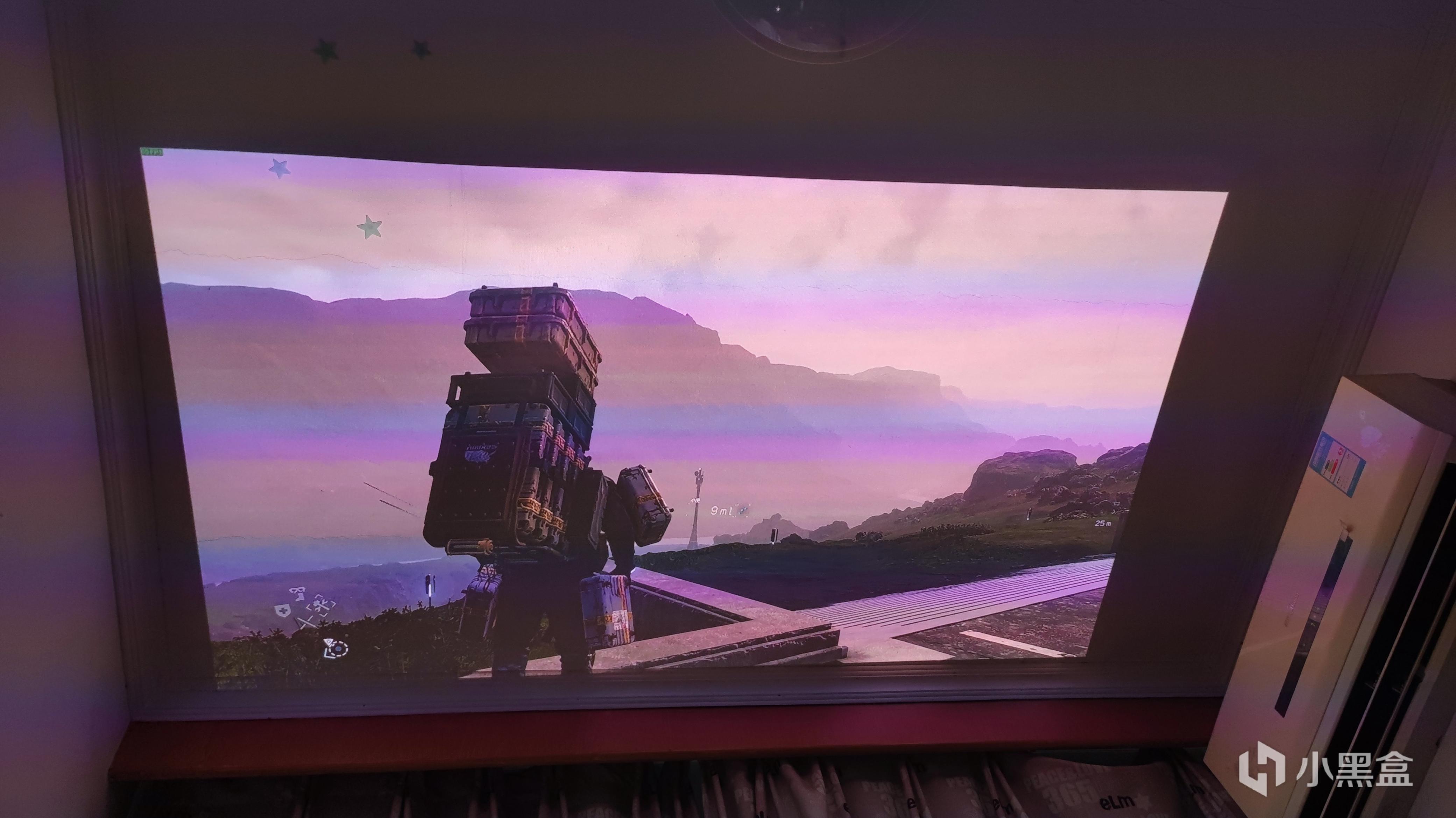 使用方式上目前我都是無幕布直接往牆上投,看圖片能看出來牆並不乾淨(天花板上有貼着星星),但是畫面效果還是挺符合我個人預期的。我房間比較小橫投的話也可以相對畫幅更小,坐PC旁邊的時候我會選擇橫投,躺牀上就往上豎投。