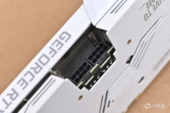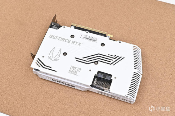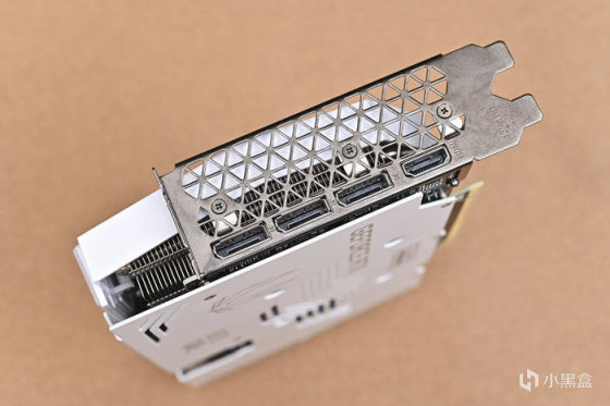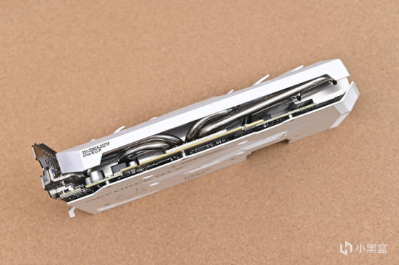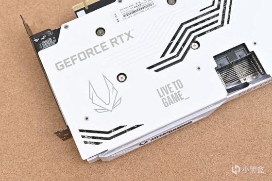 顯卡背面金屬板使用高強度合金材料一體鑄形而成,不僅僅可以保護PCB,而且也可以輔助背面的散熱,背板也採用白色設計,與正面相統一,同時設計有鏤空的線條便於氣流更好的通過。