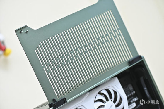 來看顯卡側。同樣的長條鏤空格柵進氣設計。