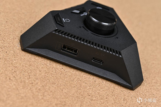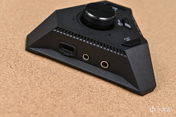 左側則是一個與主板通信的 Type-C 接口,以及 1 個耳麥組合接口和 1 個帶光纖 S/PDIF 輸出的麥克風接口。