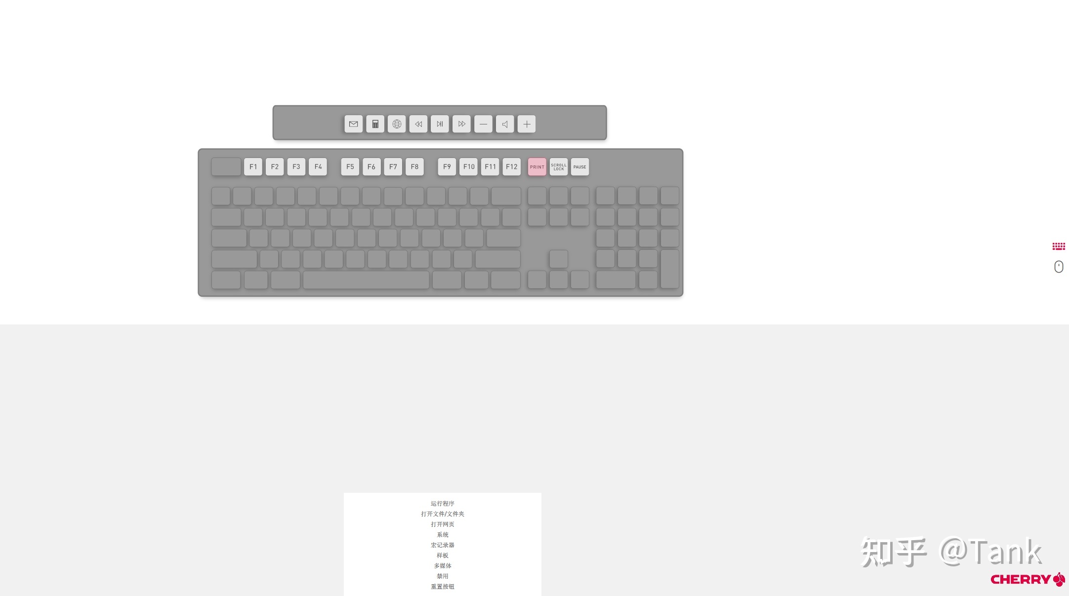 除此之外,这把 Cherry 的DW2300 是支持使用 Cherry Key 工具做简单的键位设置的,可以对F区的键位设置快捷操作,不过仅仅支持F区的按键,不过我觉得作为一把办公套装来说这已经足够了。