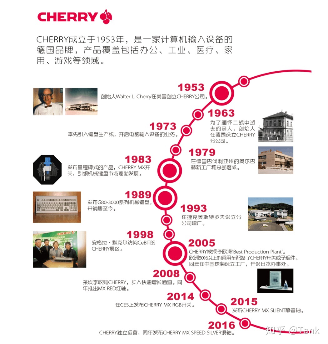 说到机械键盘就没办法绕开 Cherry ,玩家们成为樱桃或者原厂,我们常说的青、红、茶、黑也就是 Cherry 常见的四种轴体,我自己手上有好几把 Cherry 轴的机械键盘,自己第一把机械键盘也是 Chery 的 MX2.0。