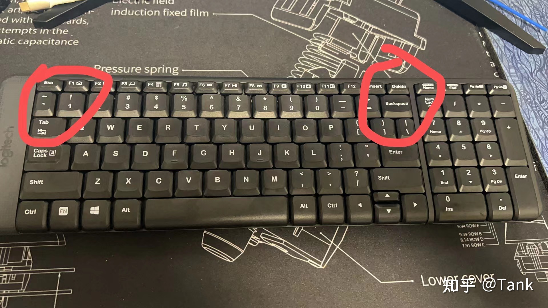 键盘的布局有点像现在的 100 键的紧凑配列,让我用着最不舒服的两个点是回删和~这两个我比较常用的按键太短了,用着稍微有点不舒服,F区支持的多功能按键也比较多,不过这把键盘估计是罗技想着设计成紧凑配列满足小数字键需求的同时不占用太多的桌面空间。