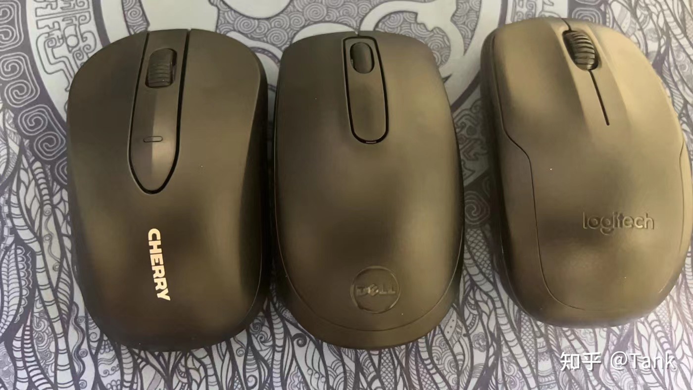鼠标上 Cherry 和罗技的在手指区域做了凹陷处理,方便指头更大面积的接触,而戴尔没有这样的设计,就是一个光面的。