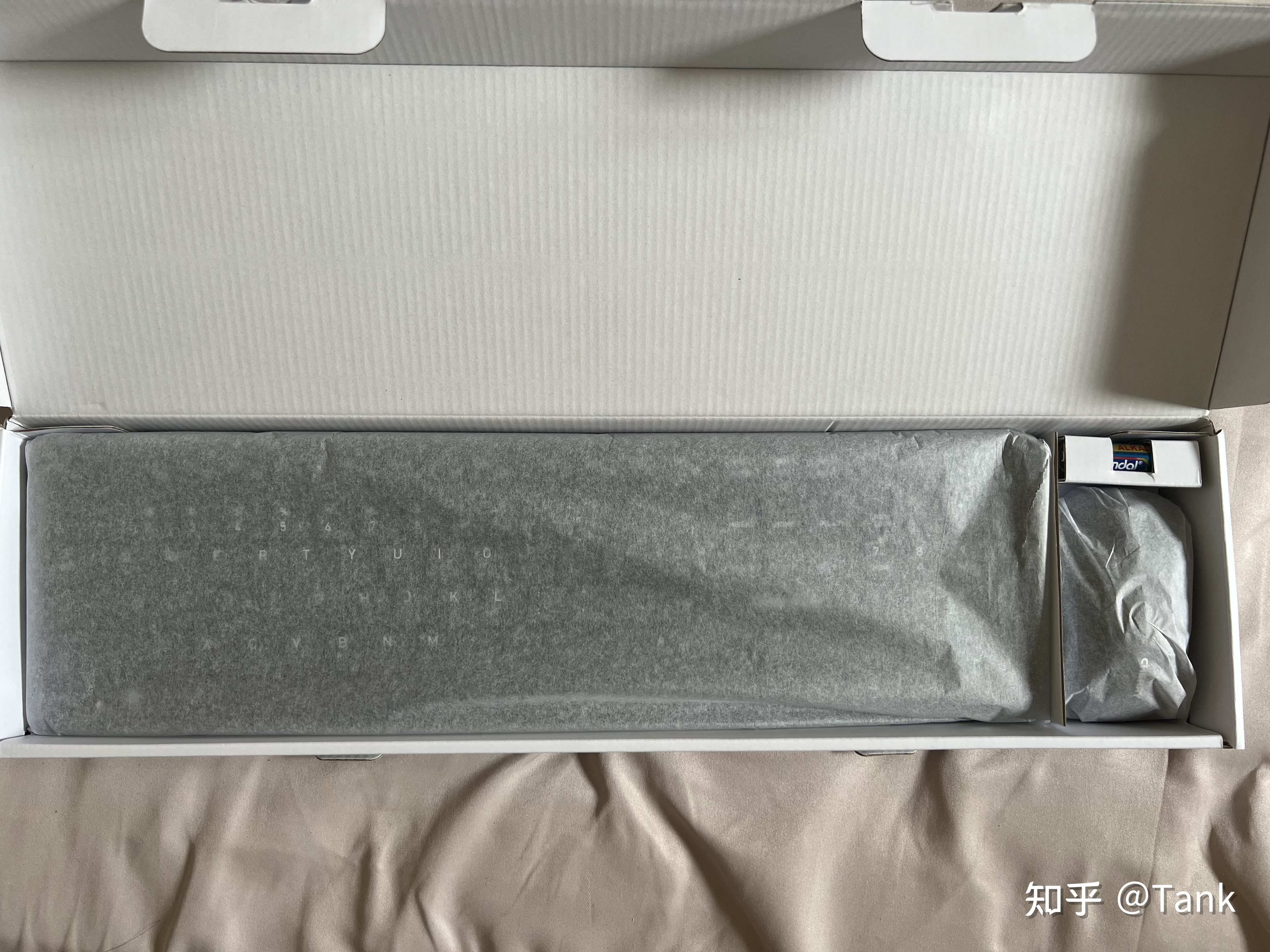 罗技的盒子比较小,也不是上下盖装键盘,而是左右的抽屉式,所以我直接把键盘里面包括配件全倒出来了。