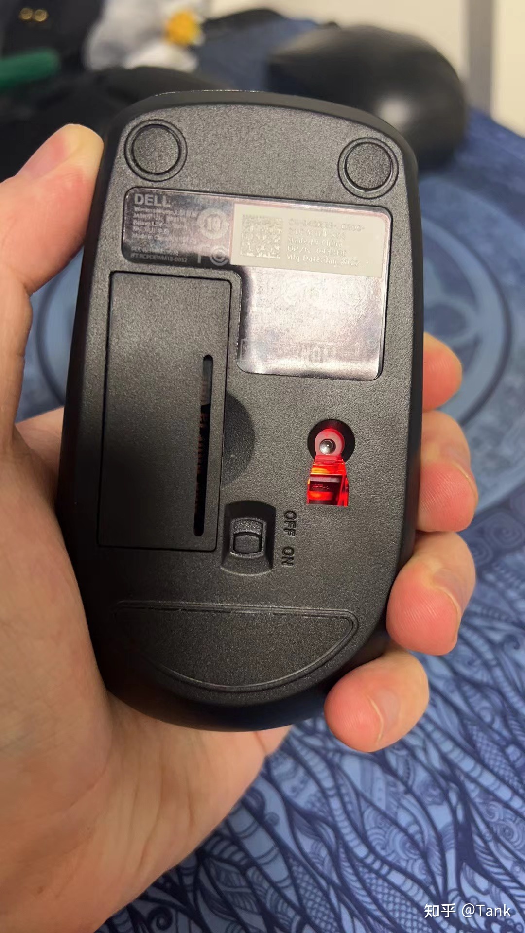 Cherry 和罗技的鼠标底部都是四个防滑垫,而戴尔的这个鼠标有点不走心的是,上面的两个加上下面的这个就只是和底板材质一样的塑料罢了,只是略微凸起。