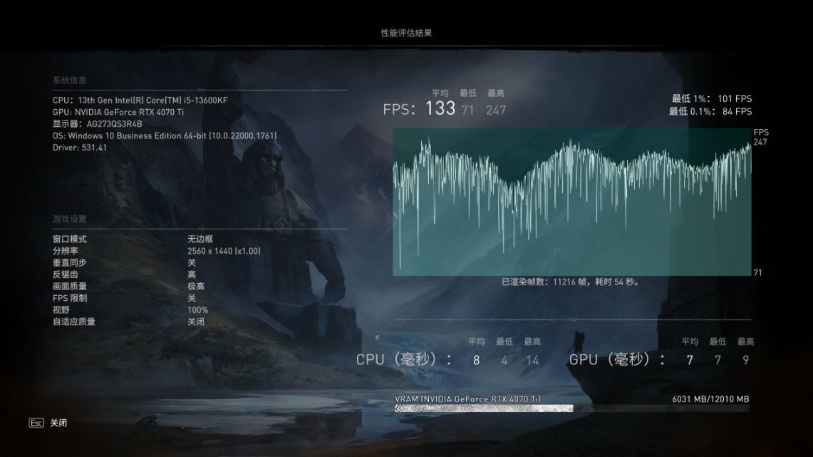 古墓麗影:暗影,開啓預設最高畫質+超高光追的情況下平均幀率爲138FPS。