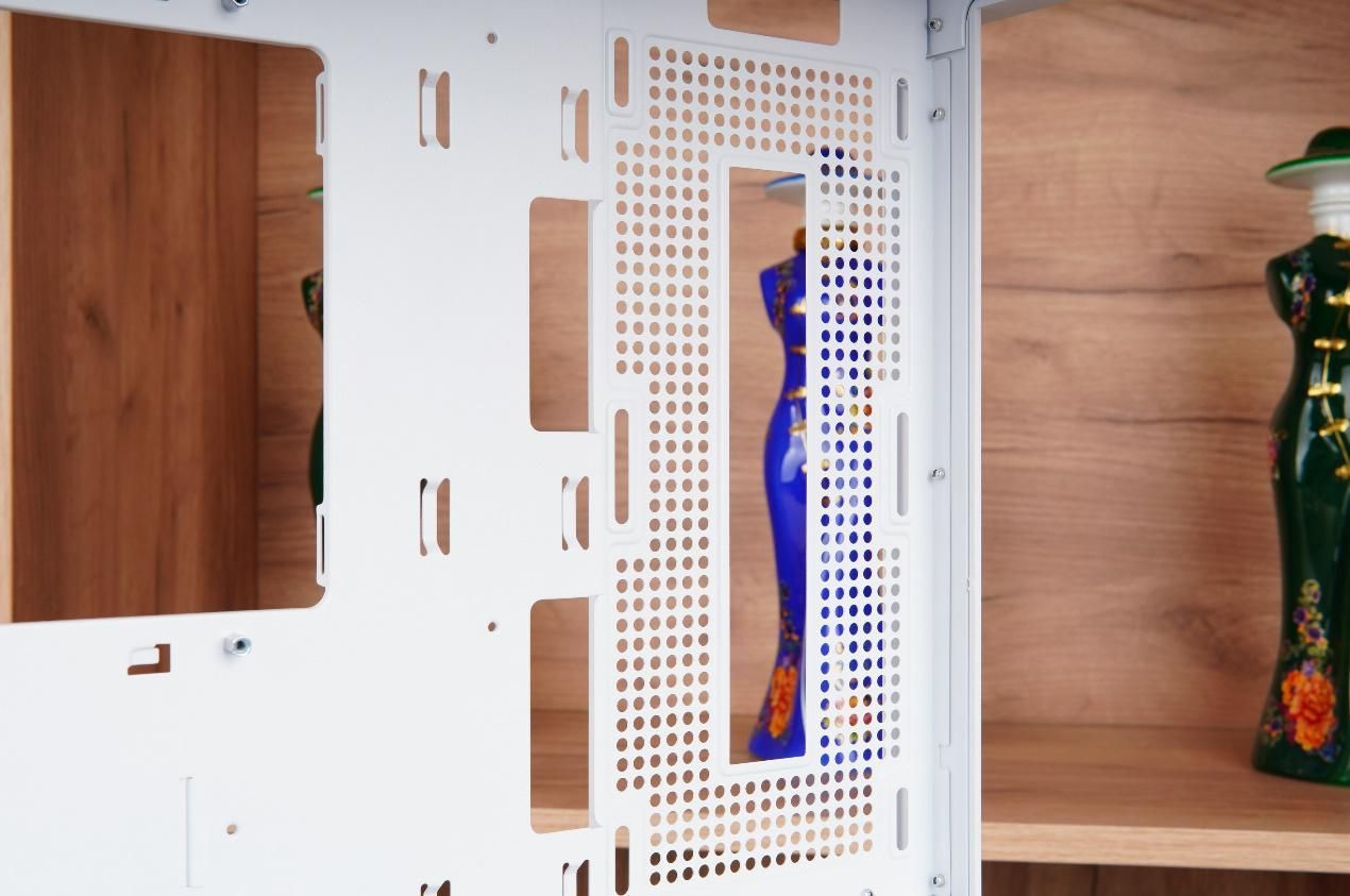 愛國者星璨嵐機箱的整體五金結構板材用料厚度達到了0.8mm,因此即便是無A柱設計整體強度依然有足夠的保證,並不會一壓就發生形變。