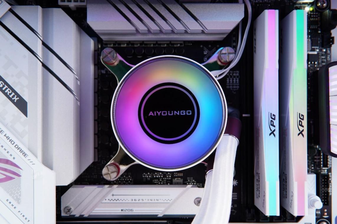 冰魄CP360的冷頭頂蓋部分可以360°旋轉,內置有一圈的ARGB燈帶。