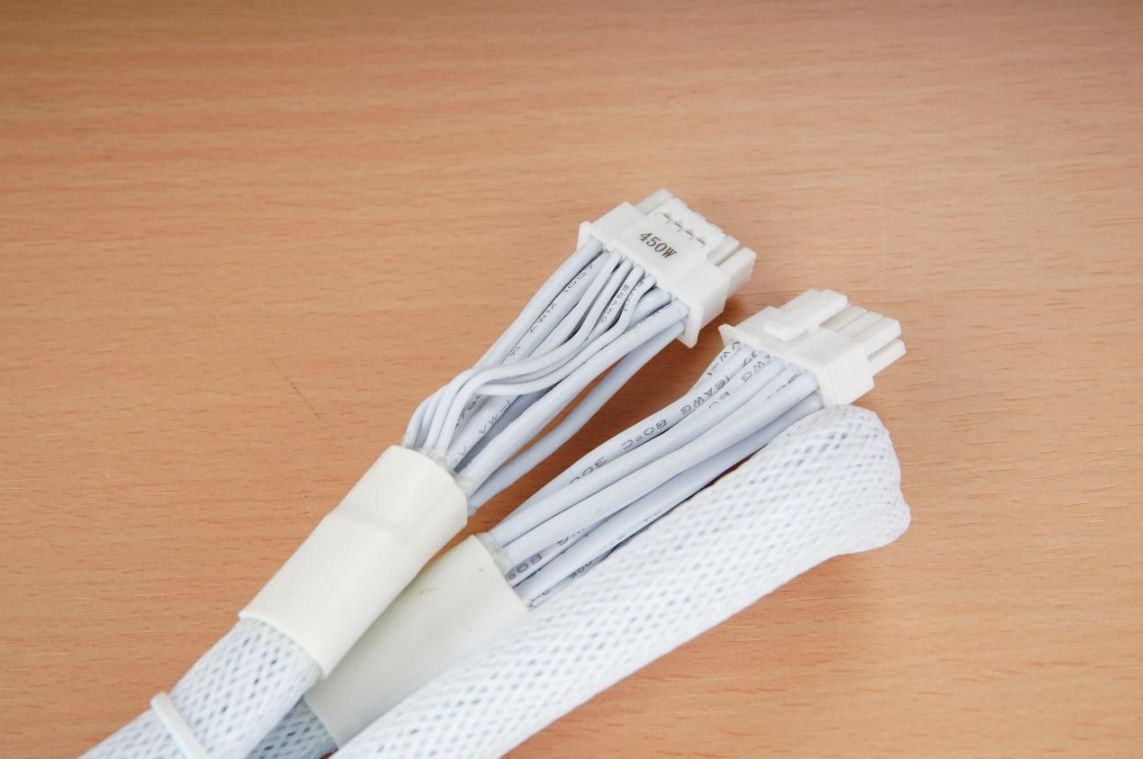 顯卡供電線除了常規的兩條8+8Pin電源線外還有一條ATX3.0電源標配的12VHPWR供電線,可以直接爲PCIe 5.0規範的顯卡供電,不過配備的是450W版本,最高可以支持到RTX4080級別顯卡。
