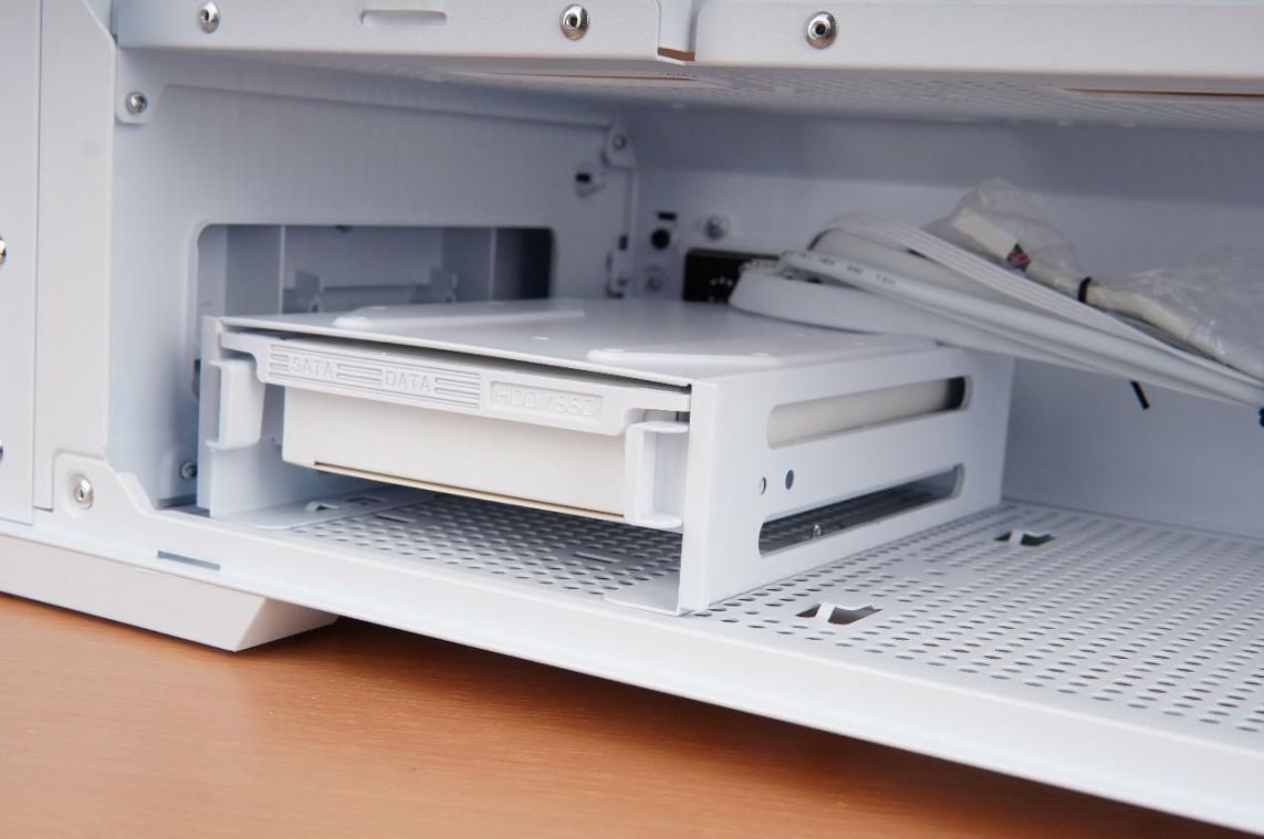 機箱背倉部分則爲常規的M-ATX設計,擁有2處硬盤安裝位。