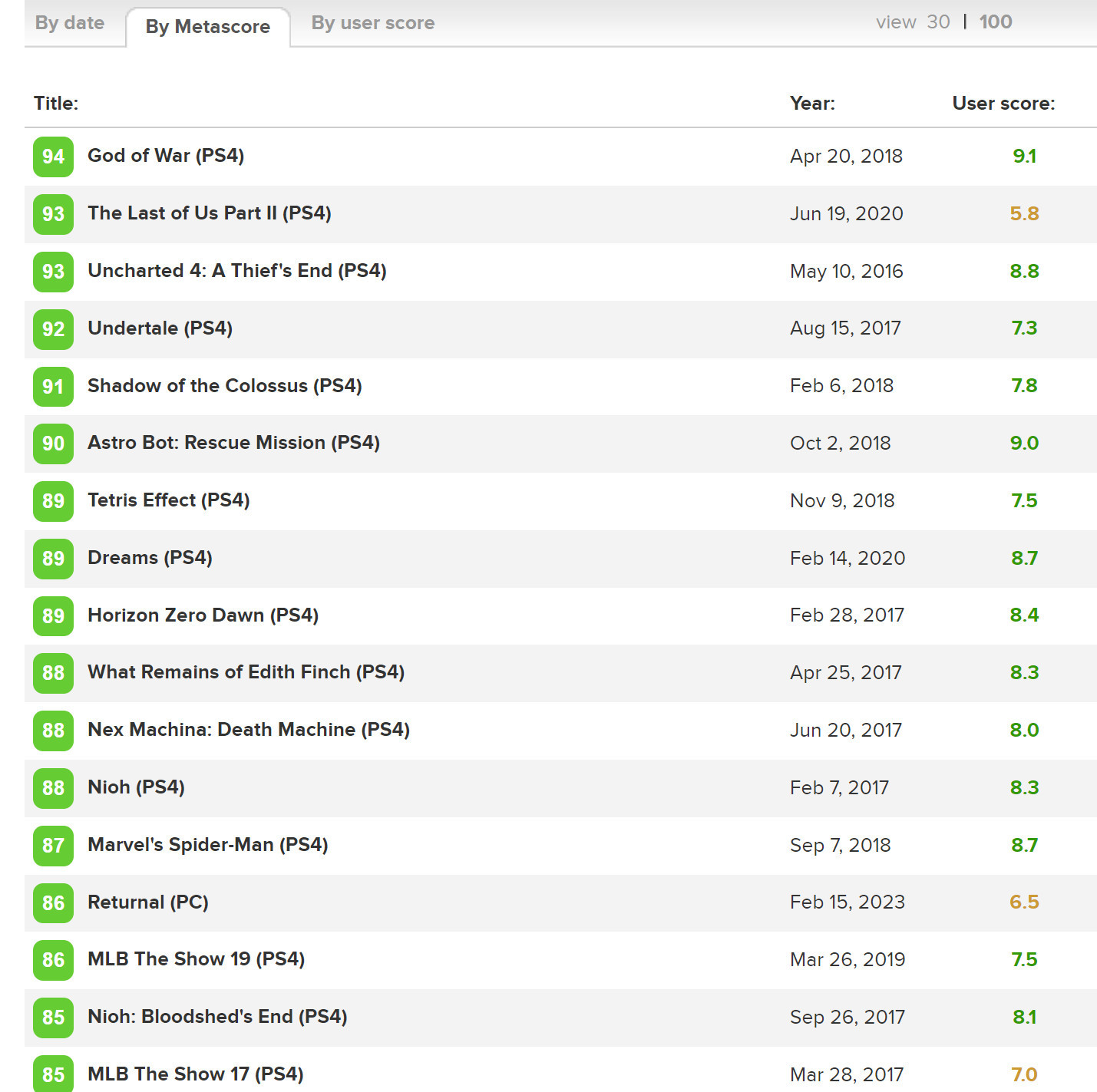 據《戰神4》前美術總監Rafael Grassetti透露,索尼要求旗下大型工作室開發的3A遊戲在MTC的媒體評分“至少是90分”。