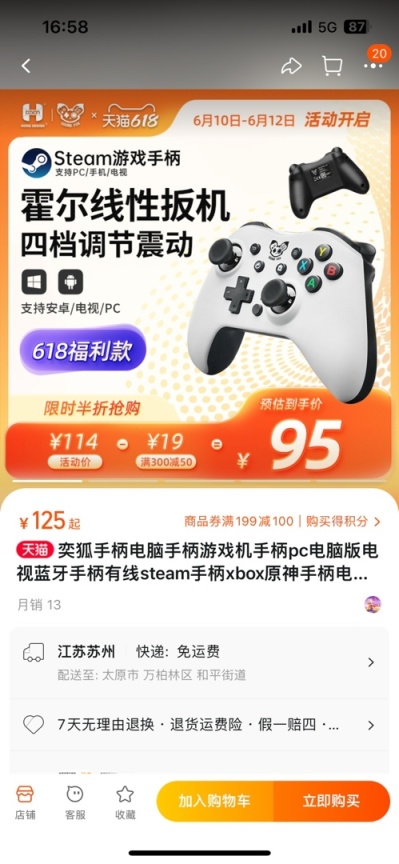5、奕狐踏白霍尔扳机 有线游戏手柄