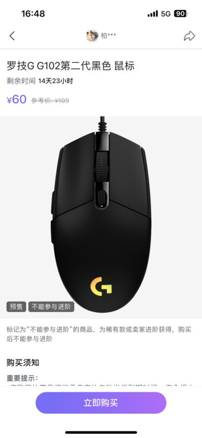 1、罗技G G102第二代黑色