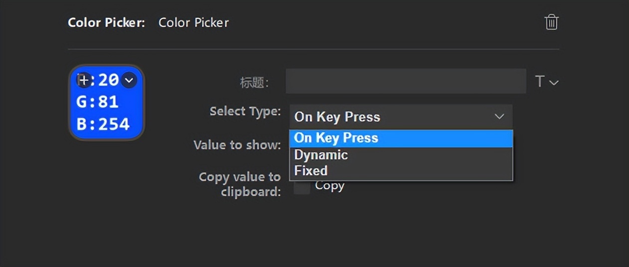 还有一个要说的功能就是这个Color Picker功能,这是我最喜欢的功能,随时随地一键/实时拾取当前鼠标位置的颜色信息。这个功能在任何时候都可以使用,不管是在桌面、工作、看视频甚至是玩游戏的时候。你可以显示为色彩名字,或是RGB组成或是颜色的十六进制值。对摄影爱好者、视频制作者来说是个非常实用的功能。