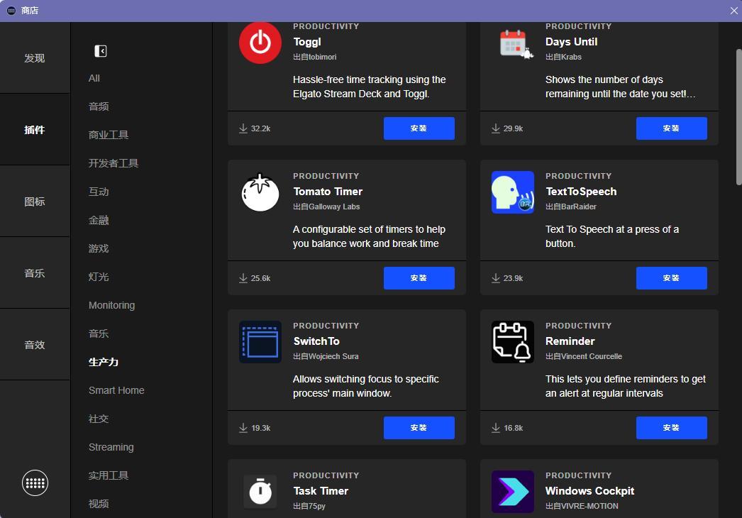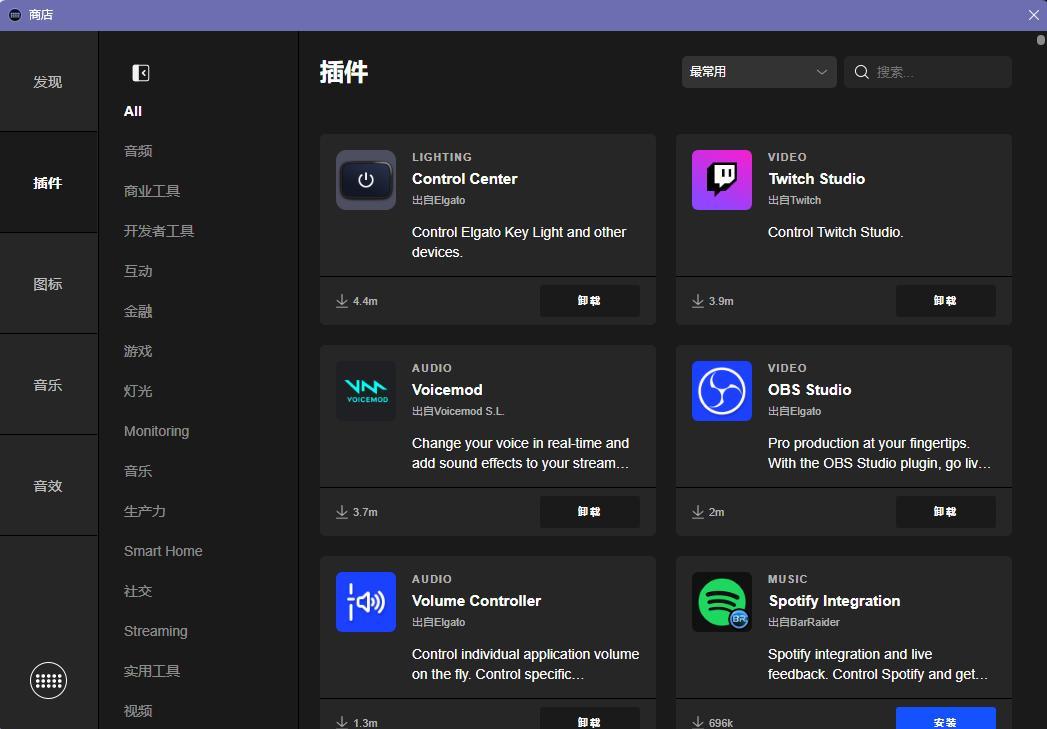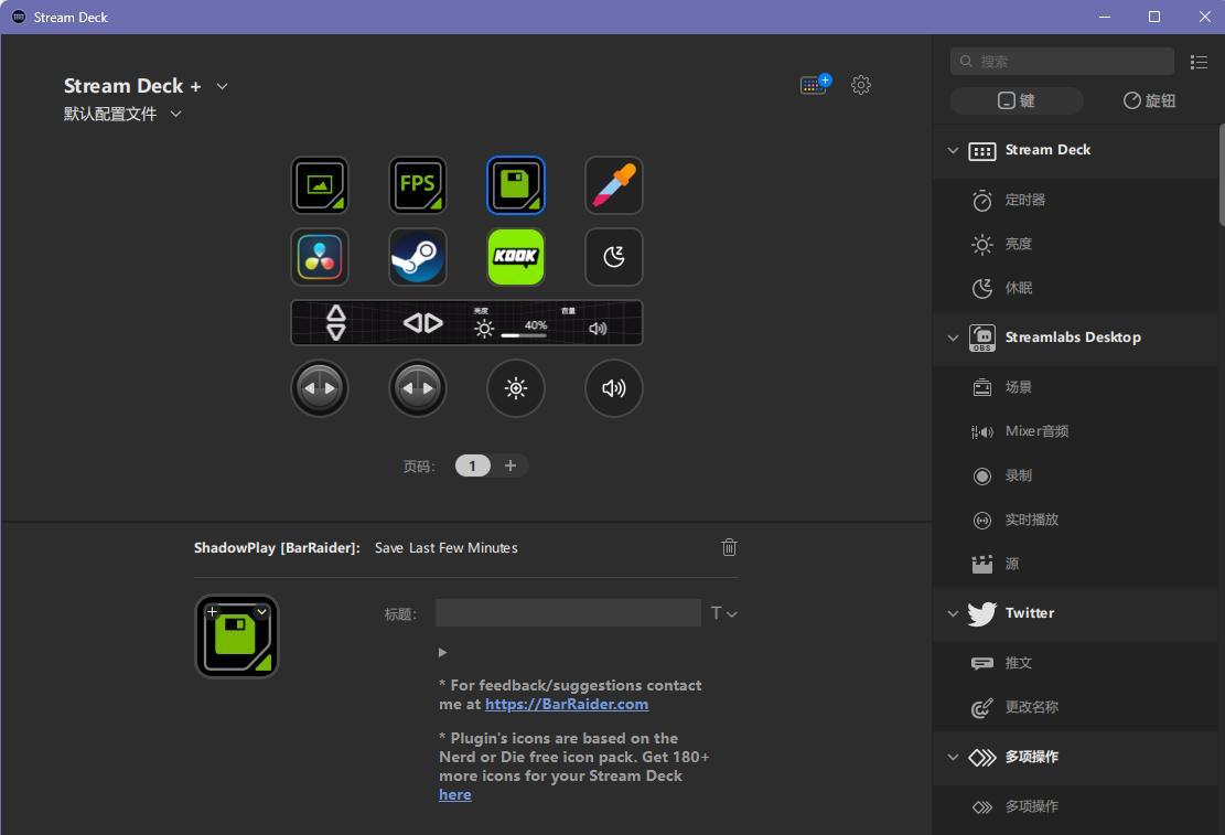Elgato Stream Deck其实在国外挺火的,网上有非常多现成的资源。不过考虑到不见得所有人英文都很好,国内用户应该大都会选择使用官方商店的资源,所以这里推荐几个官方商店里必装的预设插件。